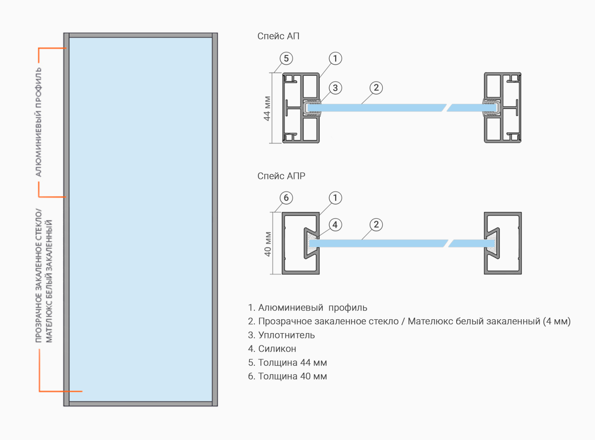 Надёжные и качественные материалы — используем закалённое стекло: прозрачное или белое матовое Мателюкс.