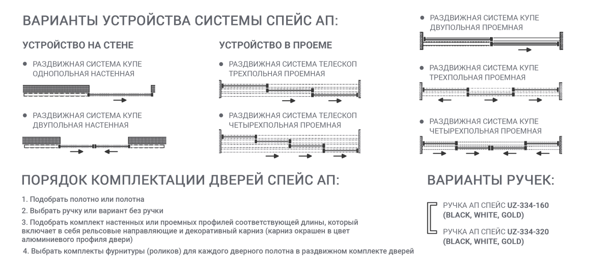Варианты исполнения — с разным числом вертикальных и горизонтальных разделений.