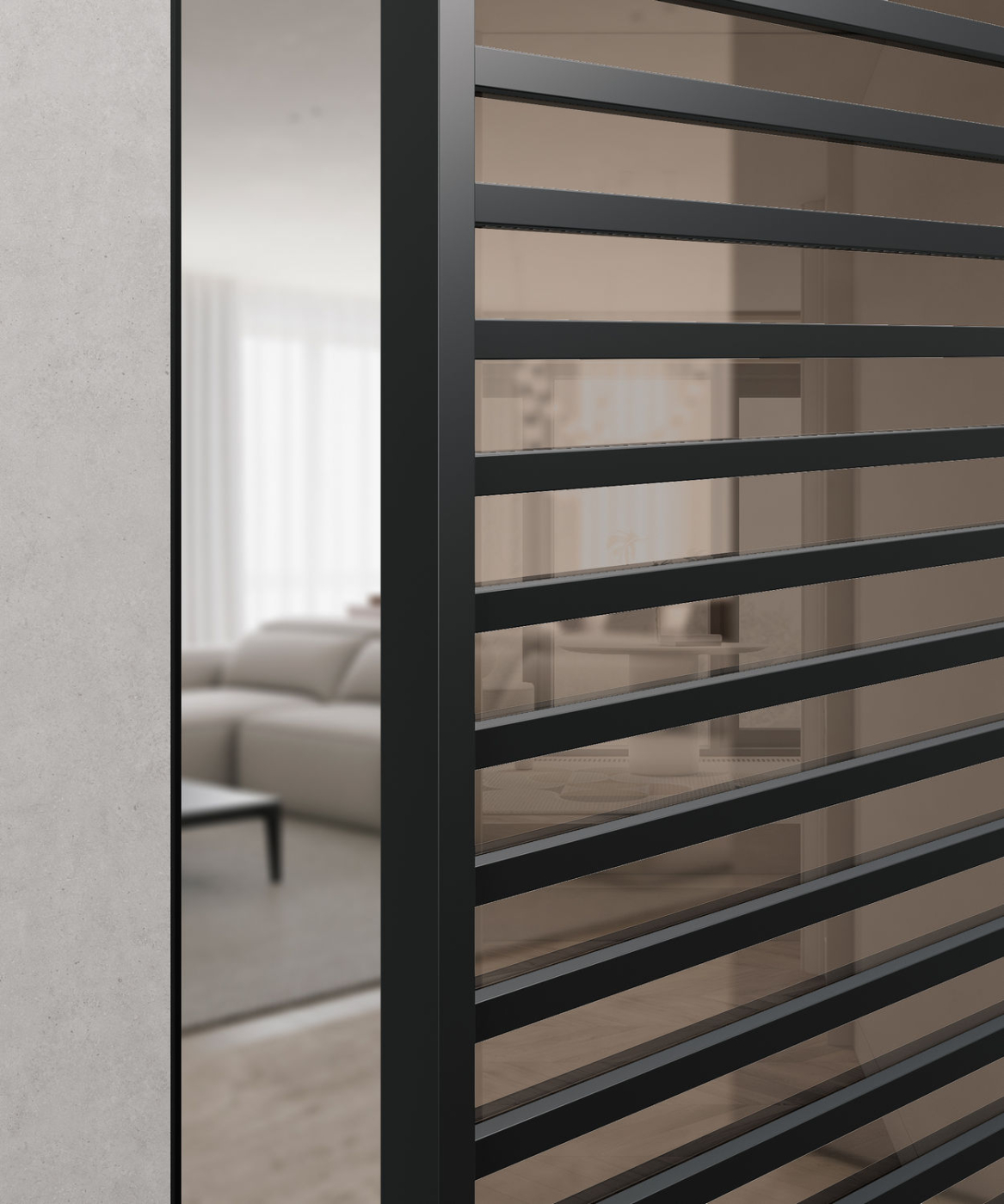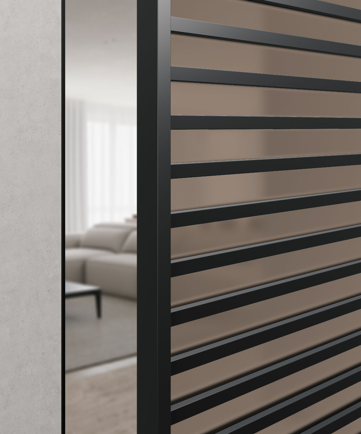 закаленное безопасное стекло Мателюкс белого, серого или бронзового цвета с матовым эффектом сохраняет приватность.