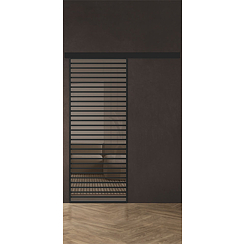 Современный дизайн: стильные межкомнатные двери в алюминиевой рамке со стеклом — оригинальный способ эффективно разделить пространство в доме или офисе. Центральным элементом дизайна является стеклянная вставка на весь размер полотна, которая зрительно увеличивает площадь комнаты, создавая комфортную, уютную атмосферу. Модель Спейс АП 11 подходит для раздвижной системы открывания (двери-купе).