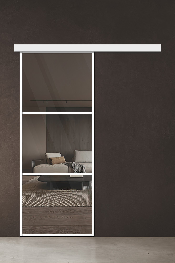 Современный дизайн: стильные двери из алюминиевого профиля — оригинальный способ эффективно разделить пространство в доме или офисе. Центральным элементом дизайна является стеклянная вставка на весь размер полотна, которая зрительно увеличивает площадь комнаты, создавая комфортную, уютную атмосферу. Модель Спейс АП 2 подходит для раздвижной системы открывания (двери-купе).