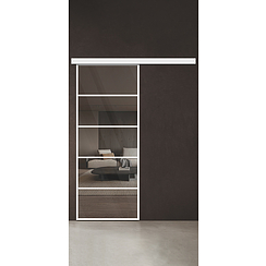 Современный дизайн: стильные двери из алюминиевого профиля — оригинальный способ эффективно разделить пространство в доме или офисе. Центральным элементом дизайна является стеклянная вставка на весь размер полотна, которая зрительно увеличивает площадь комнаты, создавая комфортную, уютную атмосферу. Модель Спейс АП 4 подходит для раздвижной системы открывания (двери-купе).