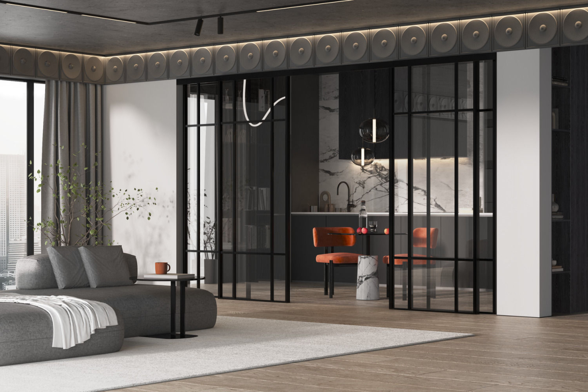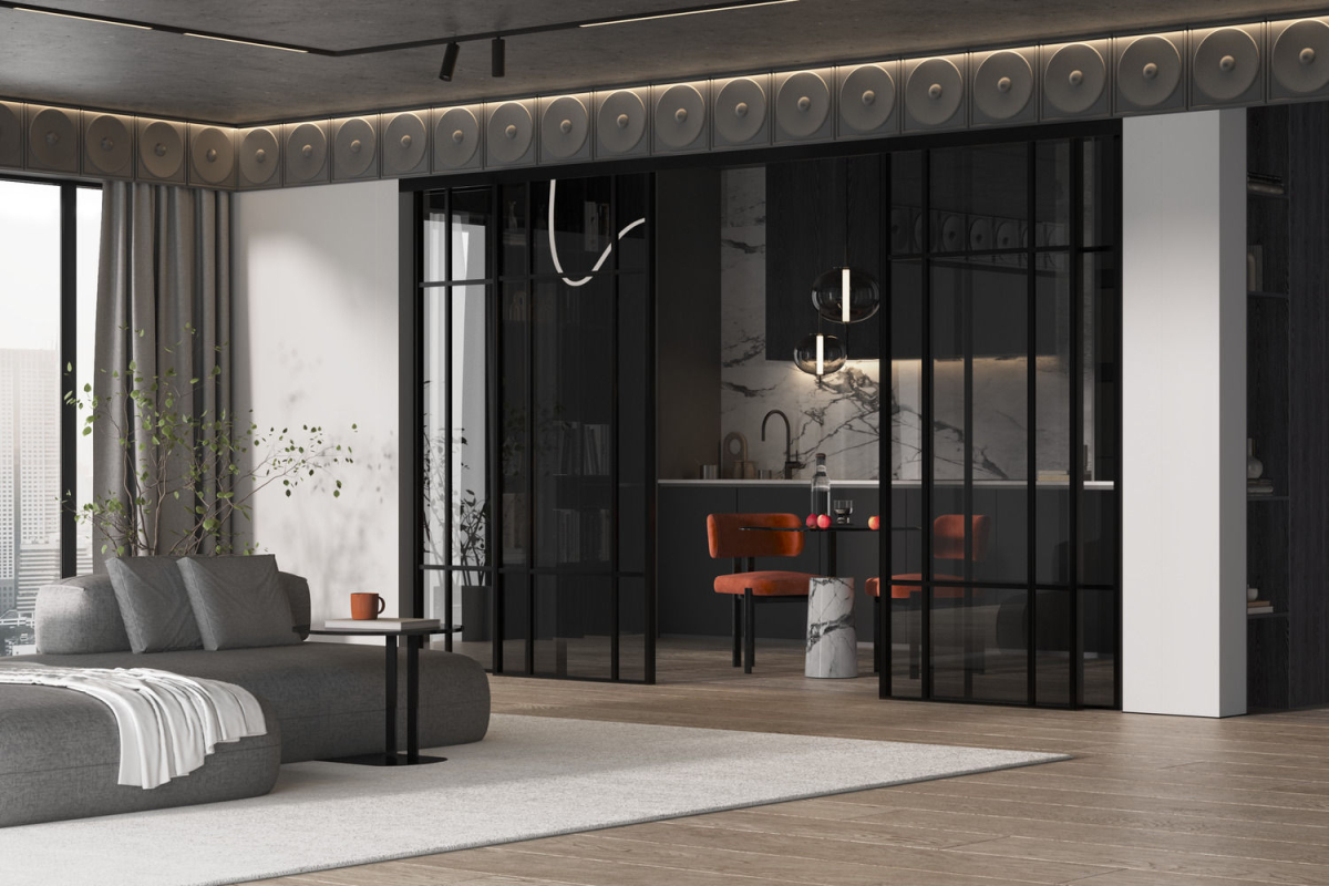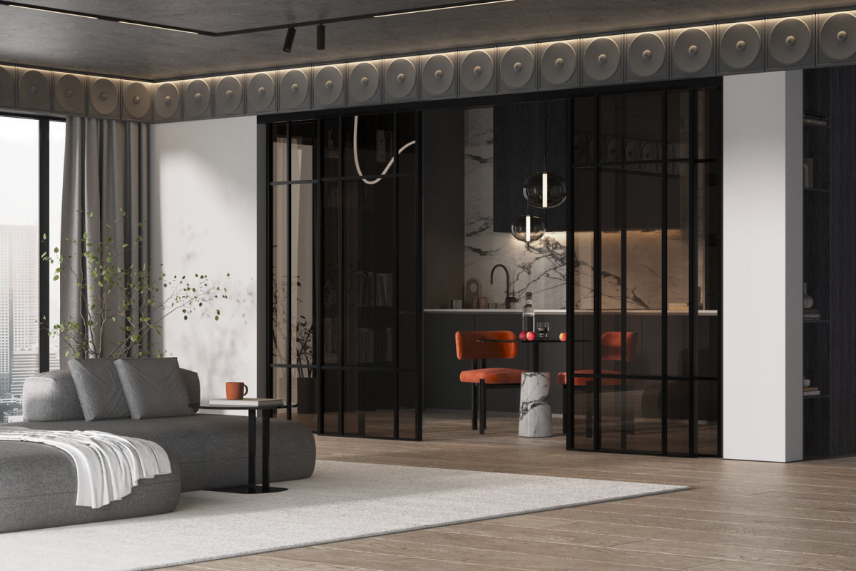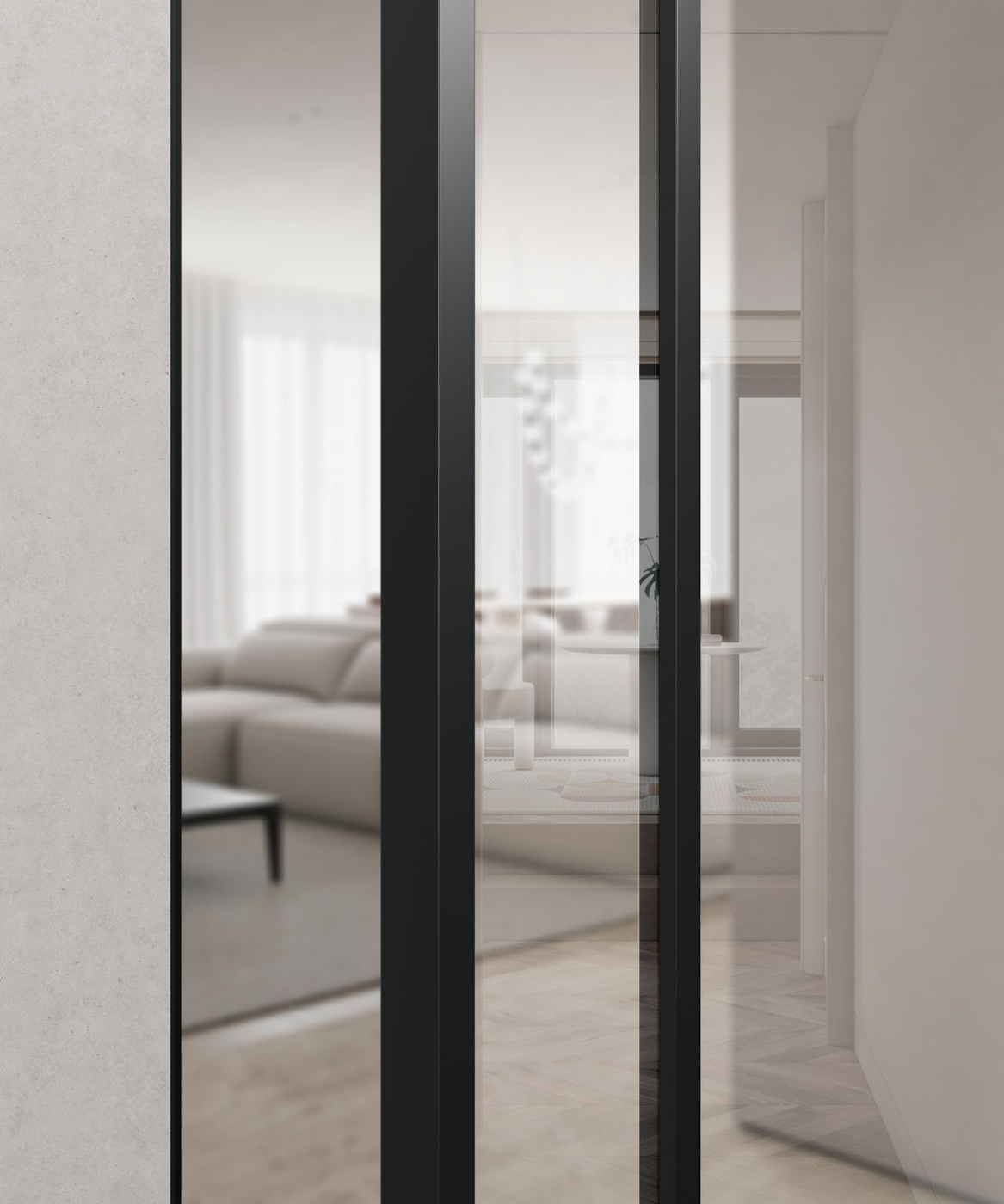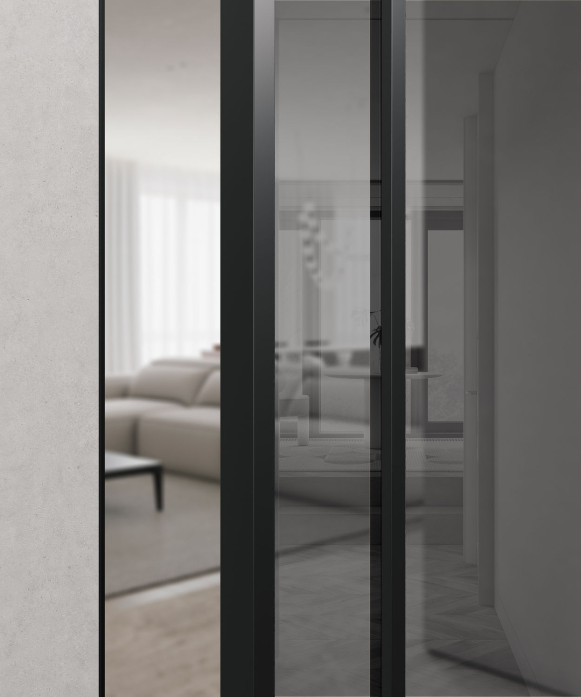 Современный дизайн: межкомнатные двери из алюминиевого профиля со стеклом — оригинальный способ эффективно разделить пространство в доме или офисе. Центральным элементом дизайна является стеклянная вставка на весь размер полотна, которая зрительно увеличивает площадь комнаты, создавая комфортную, уютную атмосферу. Стильная модель Спейс АП 7 подходит для раздвижной системы открывания (двери-купе).