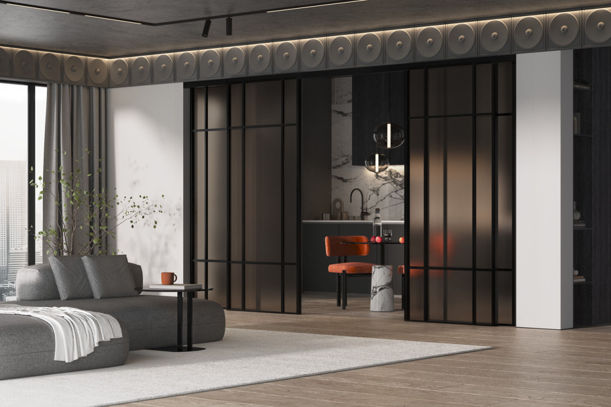 закаленное безопасное стекло Мателюкс белого, серого или бронзового цвета с матовым эффектом сохраняет приватность.