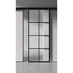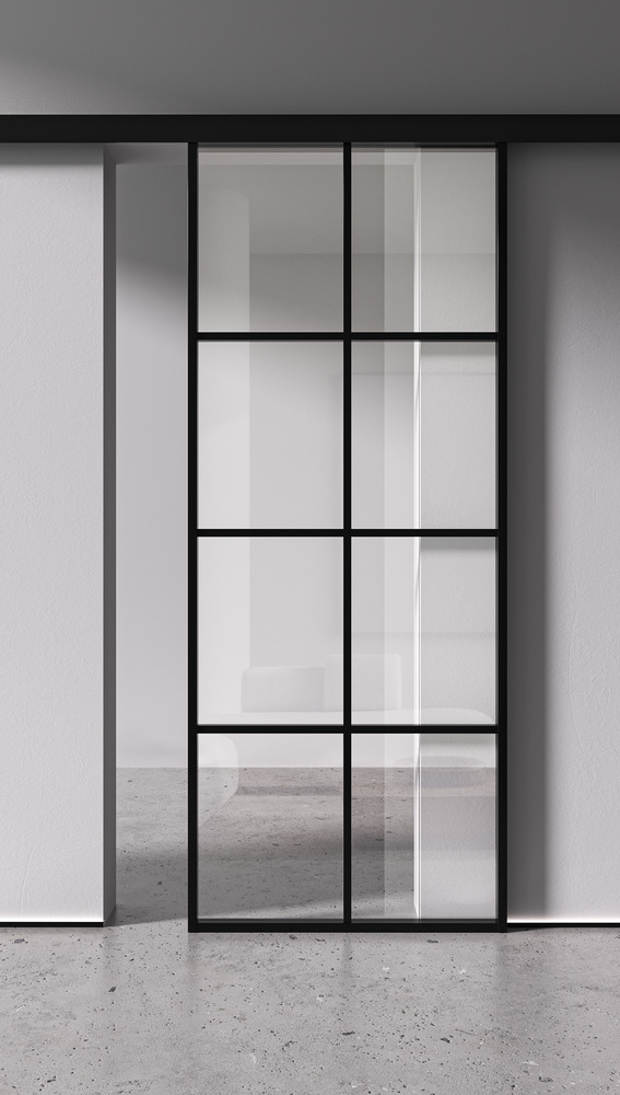 Гарантия на раздвижные двери в черном профиле из коллекции «Спейс» — 2 года.