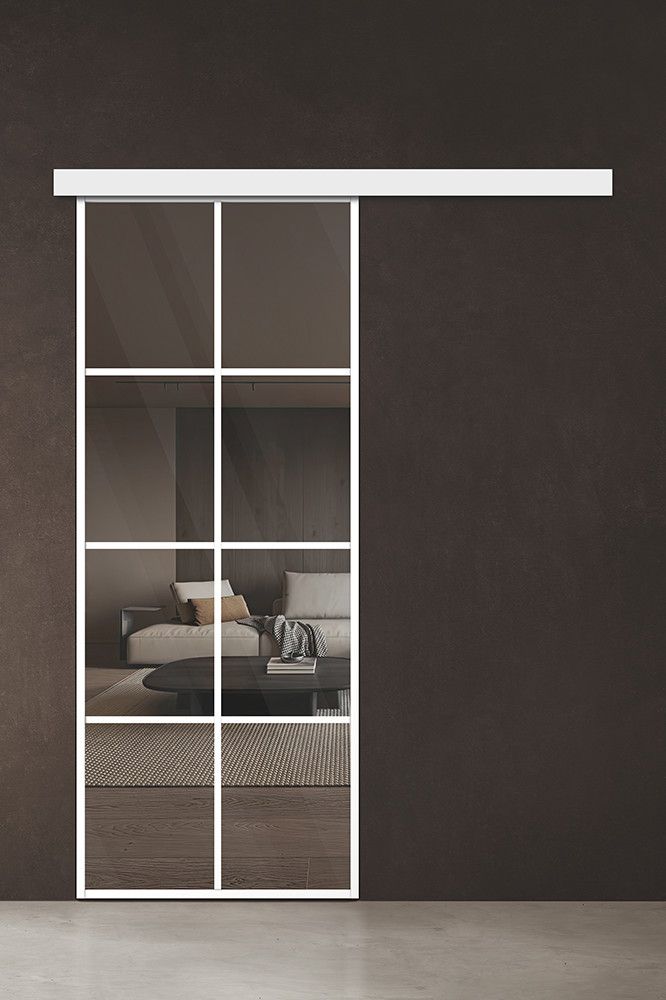 Современный дизайн: стильные двери из алюминиевого профиля — оригинальный способ эффективно разделить пространство в доме или офисе. Центральным элементом дизайна является стеклянная вставка на весь размер полотна, которая зрительно увеличивает площадь комнаты, создавая комфортную, уютную атмосферу. Модель Спейс АПР 5 подходит для распашной системы открывания.