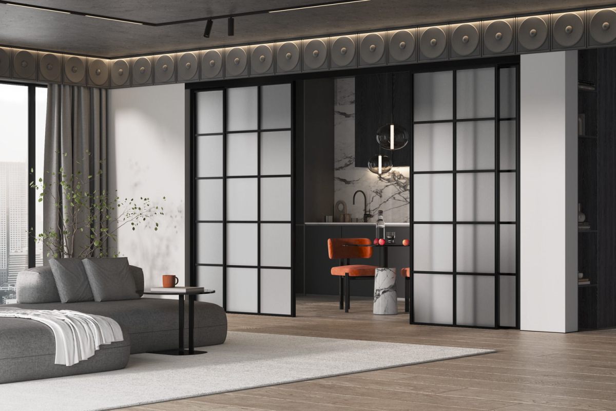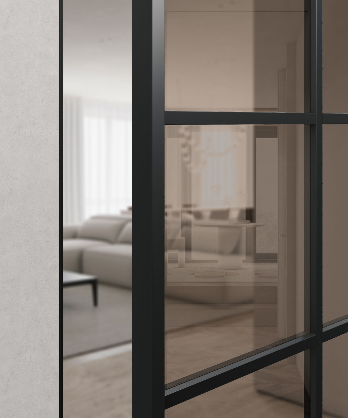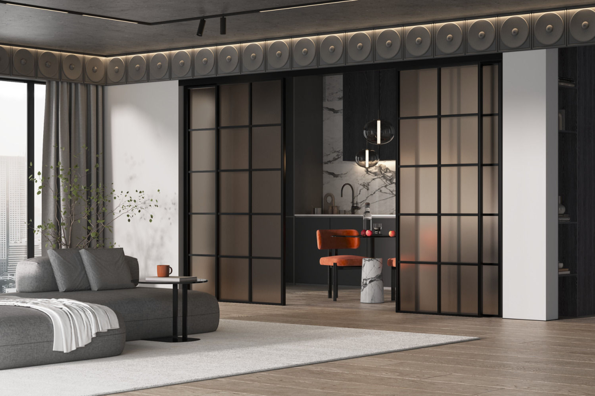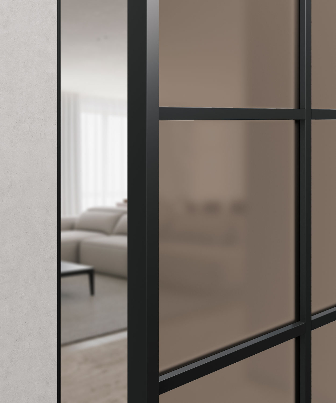 закаленное безопасное стекло Мателюкс белого, серого или бронзового цвета с матовым эффектом сохраняет приватность.