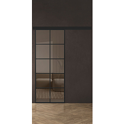 Современный дизайн: стеклянные межкомнатные двери в алюминиевой раме — оригинальный способ эффективно разделить пространство в доме или офисе. Центральным элементом дизайна является стеклянная вставка на весь размер полотна, которая зрительно увеличивает площадь комнаты, создавая комфортную, уютную атмосферу. Стильная модель Спейс АП 9 подходит для раздвижной системы открывания (двери-купе).