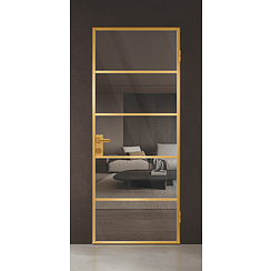 Современный дизайн: стильные двери из алюминиевого профиля — оригинальный способ эффективно разделить пространство в доме или офисе. Центральным элементом дизайна является стеклянная вставка на весь размер полотна, которая зрительно увеличивает площадь комнаты, создавая комфортную, уютную атмосферу. Модель Спейс АПР 4 подходит для распашной системы открывания.