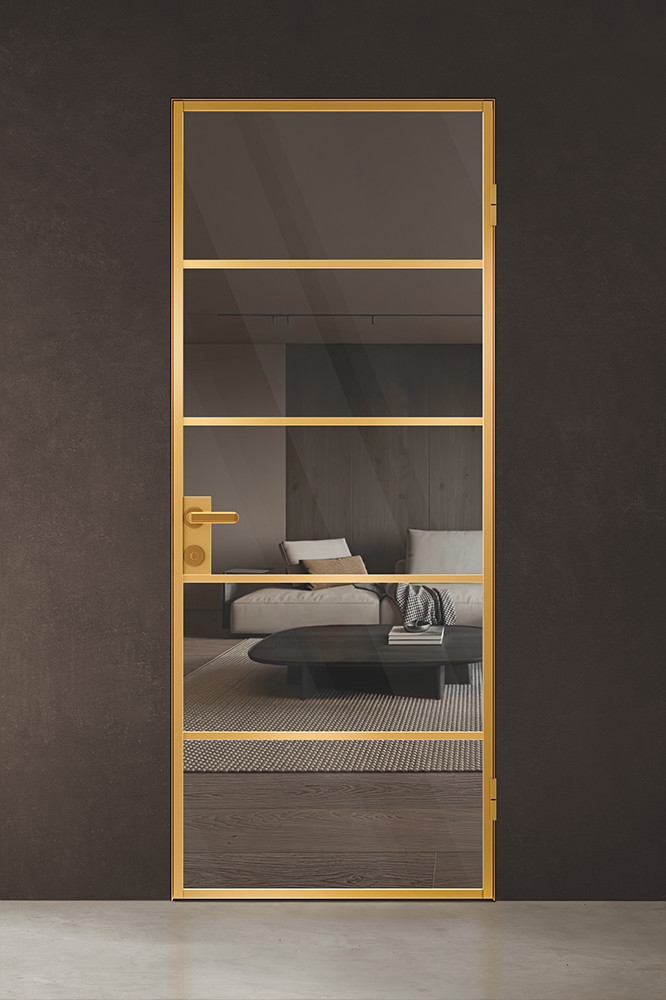 Современный дизайн: стильные двери из алюминиевого профиля — оригинальный способ эффективно разделить пространство в доме или офисе. Центральным элементом дизайна является стеклянная вставка на весь размер полотна, которая зрительно увеличивает площадь комнаты, создавая комфортную, уютную атмосферу. Модель Спейс АПР 4 подходит для распашной системы открывания.