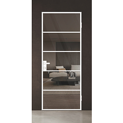Современный дизайн: стильные двери из алюминиевого профиля — оригинальный способ эффективно разделить пространство в доме или офисе. Центральным элементом дизайна является стеклянная вставка на весь размер полотна, которая зрительно увеличивает площадь комнаты, создавая комфортную, уютную атмосферу. Модель Спейс АПР 4 подходит для распашной системы открывания.
