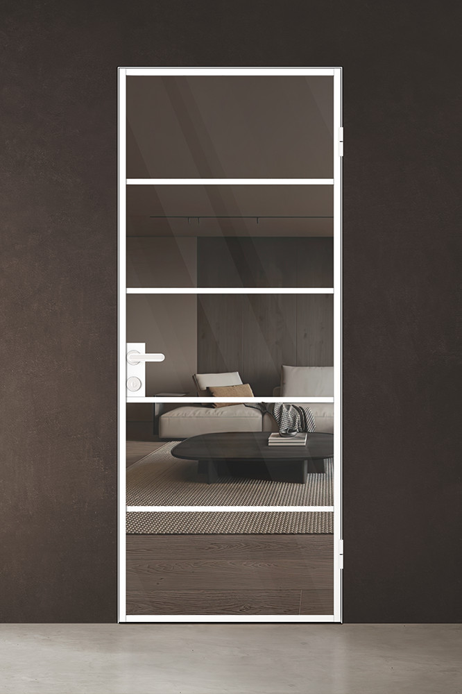 Современный дизайн: стильные двери из алюминиевого профиля — оригинальный способ эффективно разделить пространство в доме или офисе. Центральным элементом дизайна является стеклянная вставка на весь размер полотна, которая зрительно увеличивает площадь комнаты, создавая комфортную, уютную атмосферу. Модель Спейс АПР 4 подходит для распашной системы открывания.