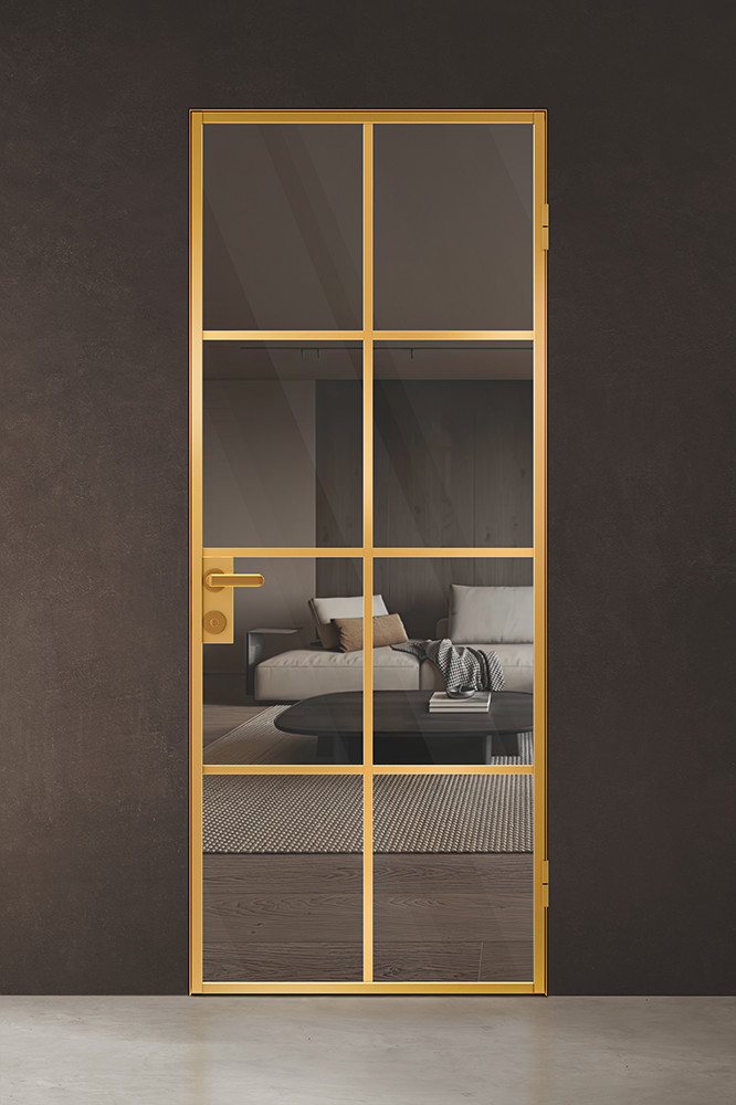 Современный дизайн: стильные двери из алюминиевого профиля — оригинальный способ эффективно разделить пространство в доме или офисе. Центральным элементом дизайна является стеклянная вставка на весь размер полотна, которая зрительно увеличивает площадь комнаты, создавая комфортную, уютную атмосферу. Модель Спейс АПР 5 подходит для распашной системы открывания.