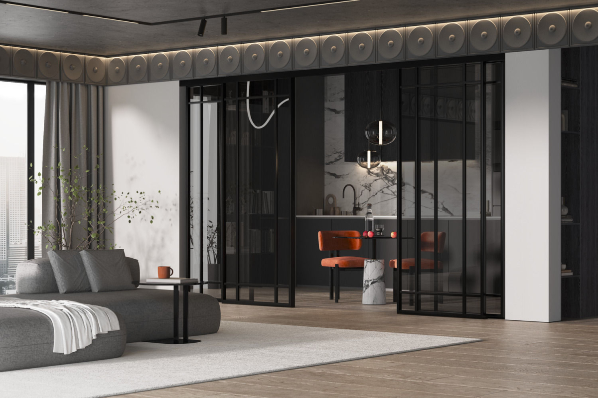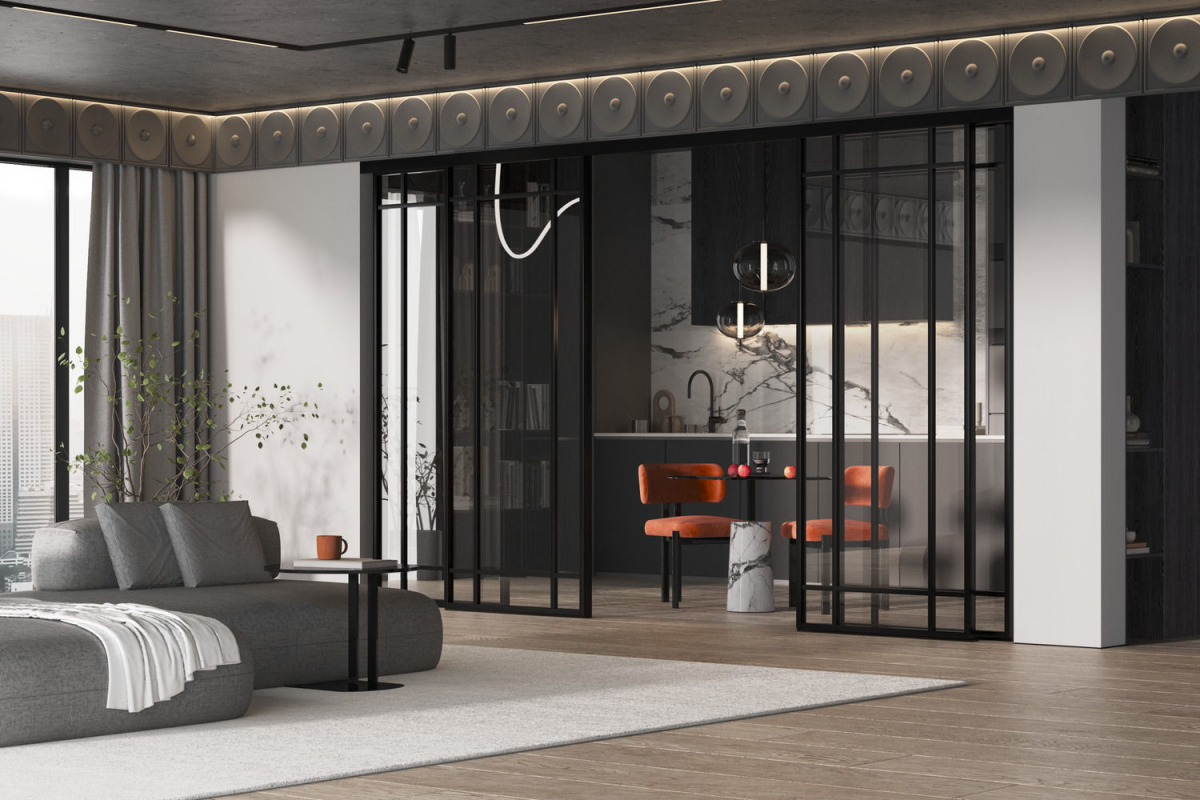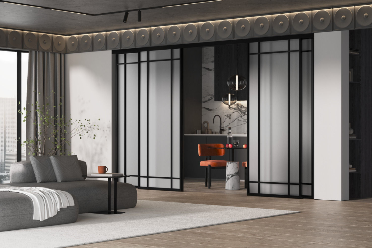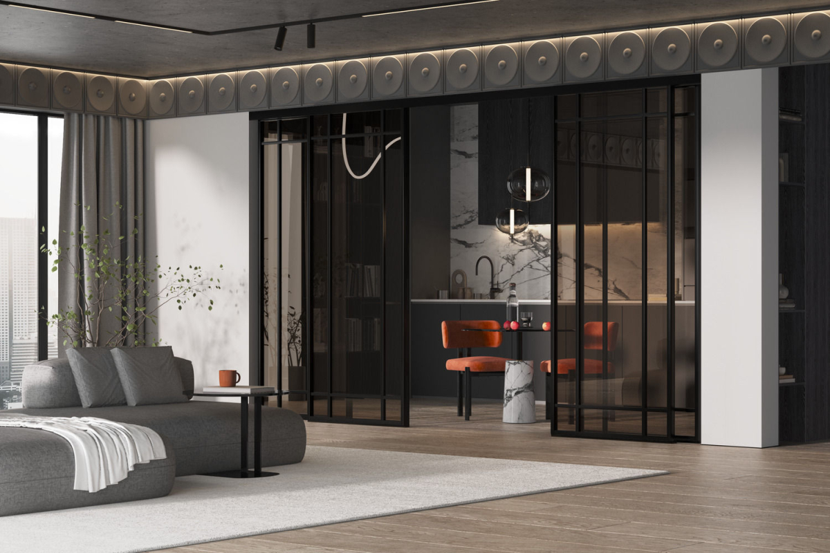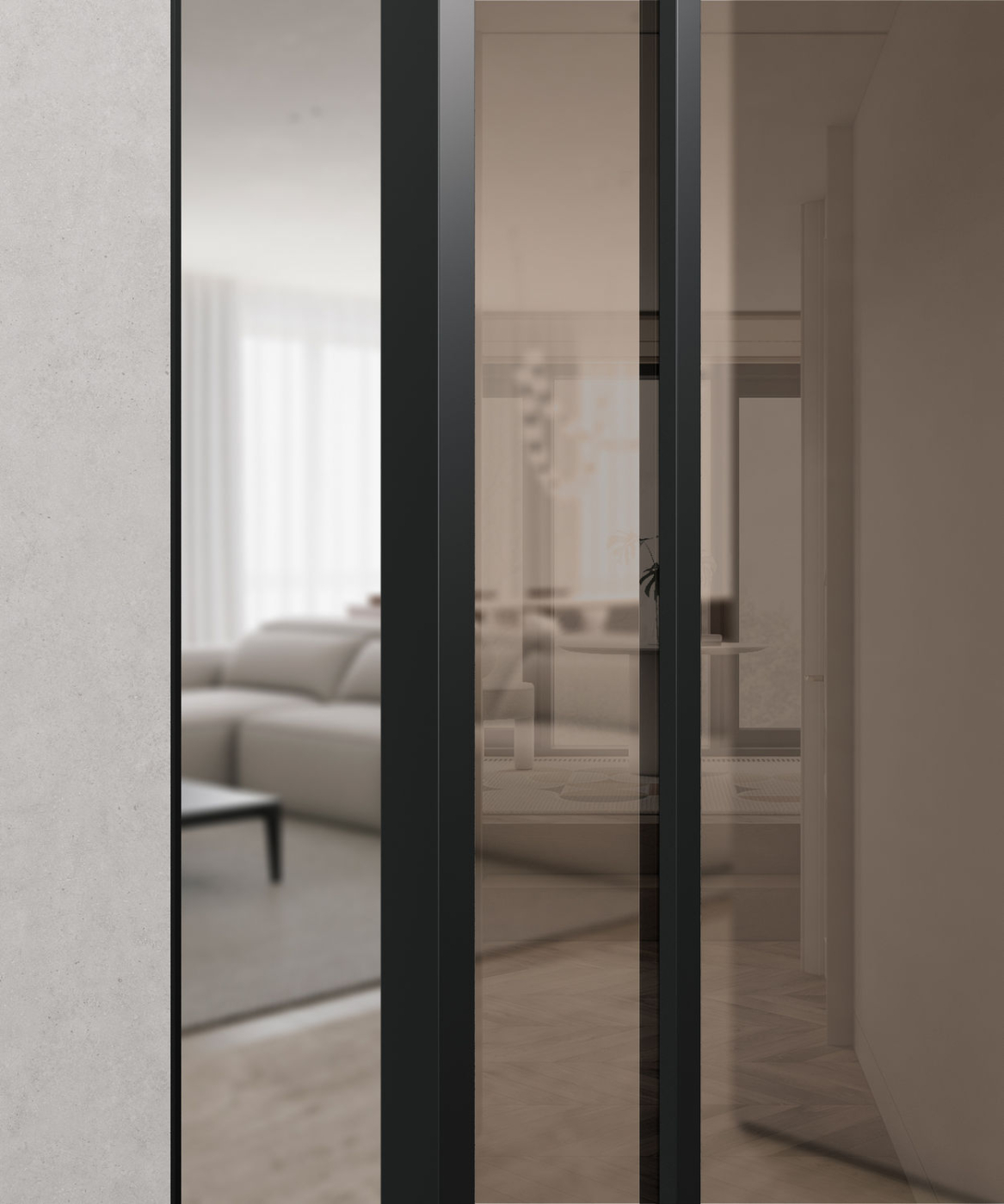 Стеклянные межкомнатные двери в алюминиевой коробке — инновационное решение для роскошных интерьеров. Они изготавливаются на заводе Belwooddoors (Минск, РБ) и доступны к заказу в любом размере по высоте и ширине (двери-купе).
