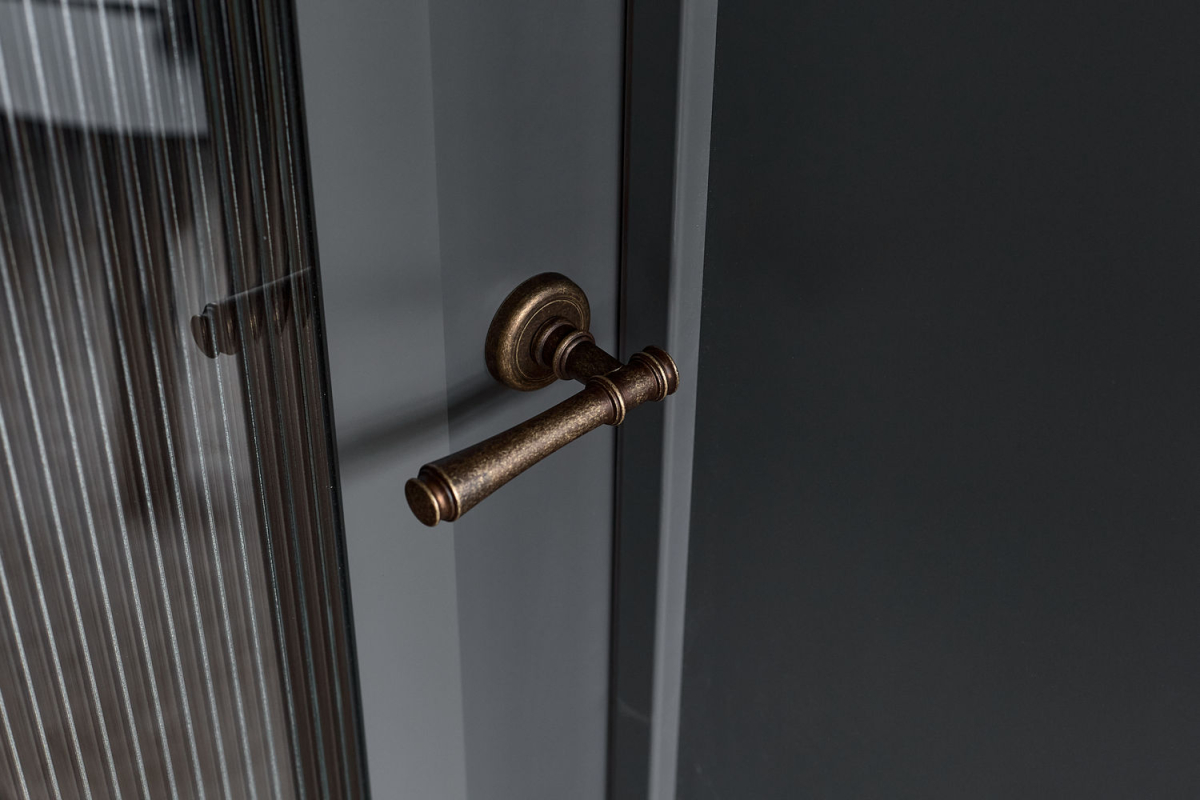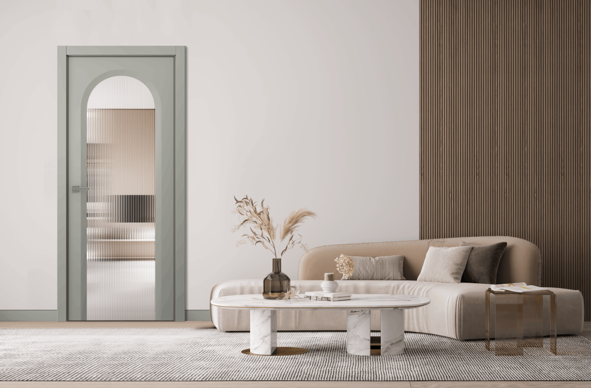 Стекло: триплекс прозрачное Волна или закаленное безопасное стекло Мателюкс белого цвета с матовым эффектом сохраняет приватность в комнате, слегка наполняя ее светом.