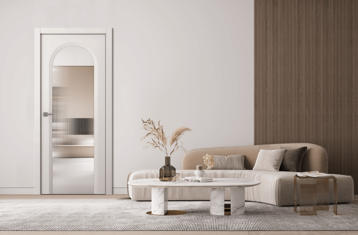 Стекло: триплекс прозрачное Волна или закаленное безопасное стекло Мателюкс белого цвета с матовым эффектом сохраняет приватность в комнате, слегка наполняя ее светом.