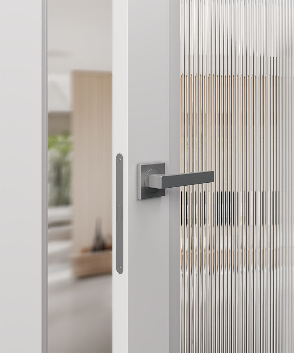 закаленное безопасное стекло Мателюкс белого цвета с матовым эффектом сохраняет приватность в комнате, слегка наполняя ее светом;