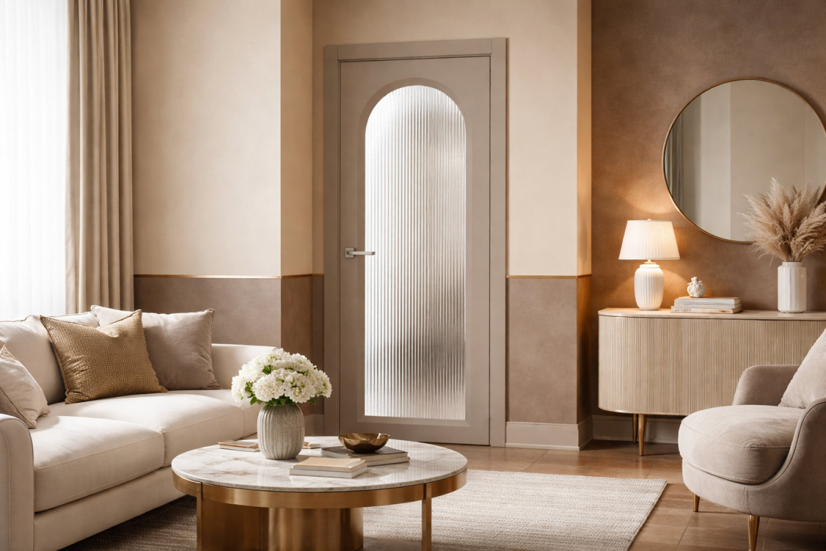 закаленное безопасное стекло Мателюкс белого цвета с матовым эффектом сохраняет приватность в комнате, слегка наполняя ее светом;