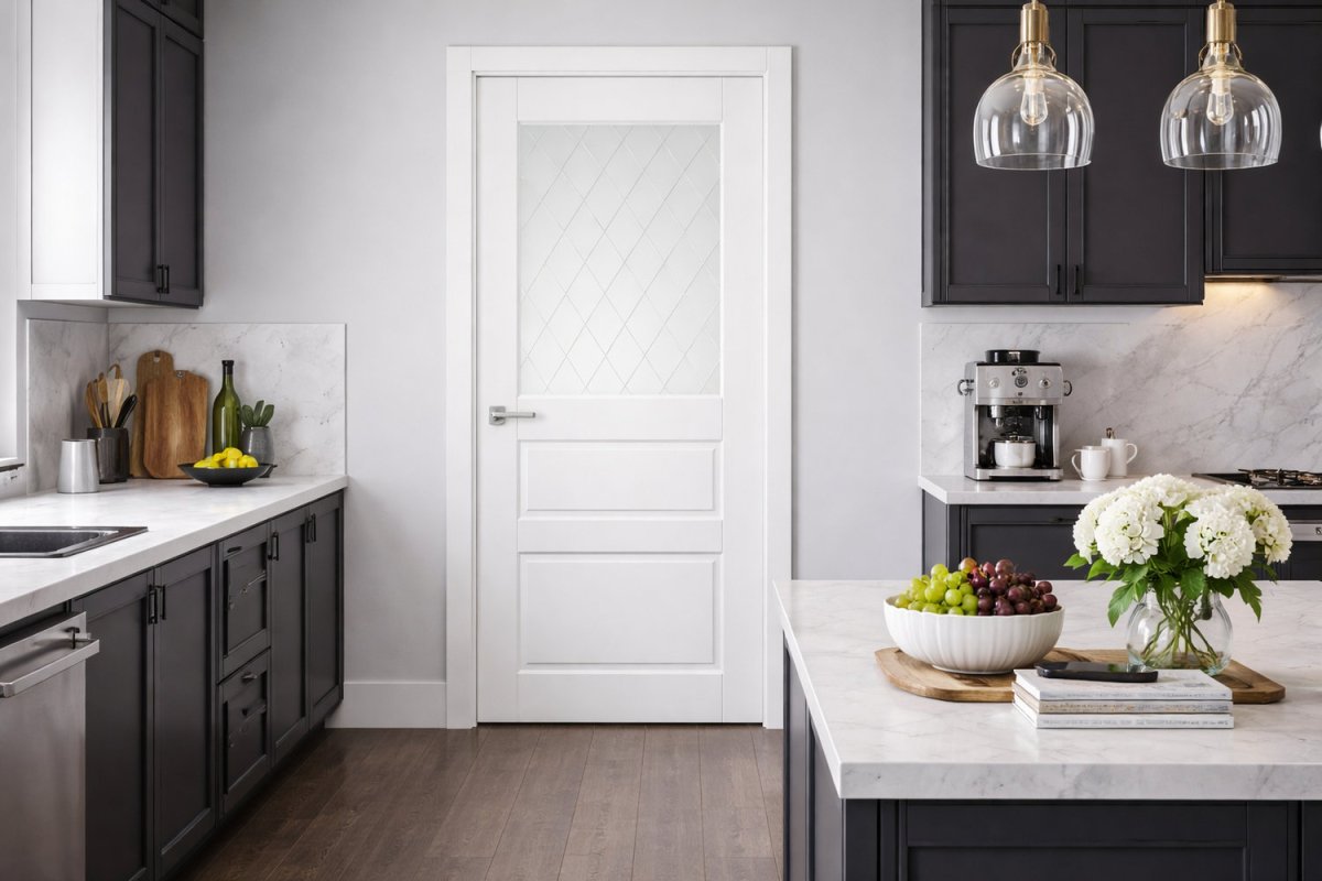 Стекло: витражное стекло Мателюкс белого цвета с матовым эффектом сохраняет приватность в комнате, при этом наполняя ее светом.