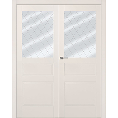 Межкомнатная дверь Инари Эмаль жемчуг Двойная со стеклом