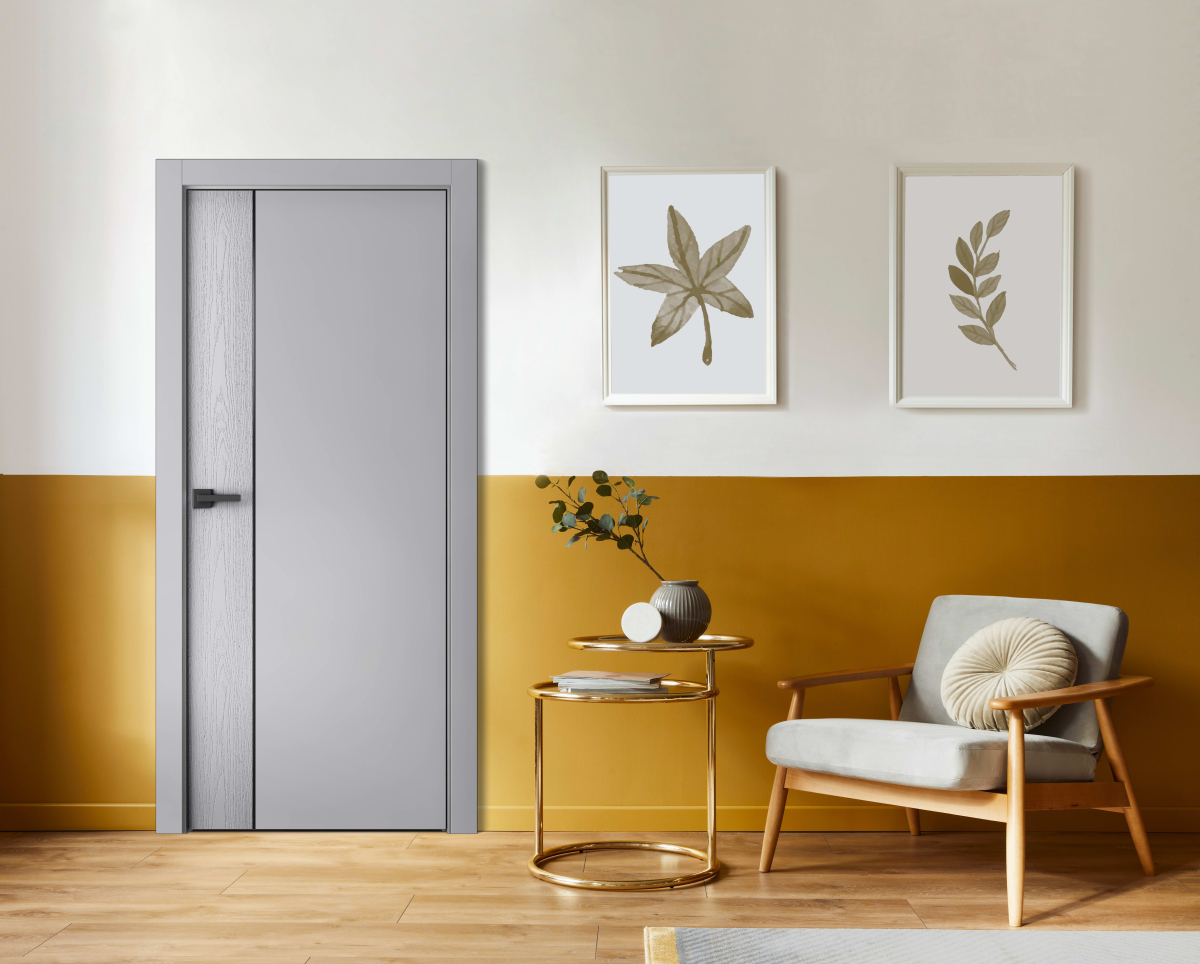Межкомнатная дверь Вега 1 Молдинг Черный Эмаль светло-серый глухая