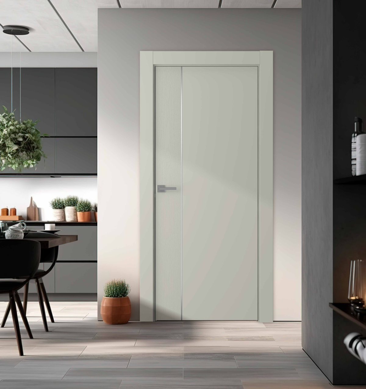 Современный дизайн: акцентным элементом на полотне выступает вертикальная вставка из полипропилена, которая по текстуре напоминает дерево и добавляет интерьеру природных ноток, а также сочетающийся с фурнитурой алюминиевый молдинг в цвете хром или золото. Благодаря минималистичному оформлению и универсальному оттенку глухая межкомнатная дверь из массива дерева Вега 1 гармонично смотрится с любой палитрой, мебелью и домашними аксессуарами.