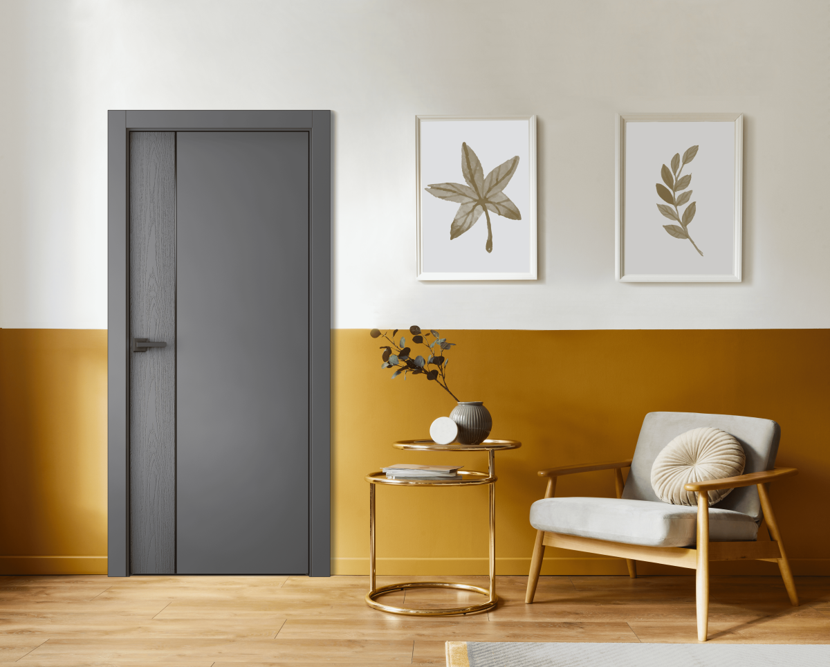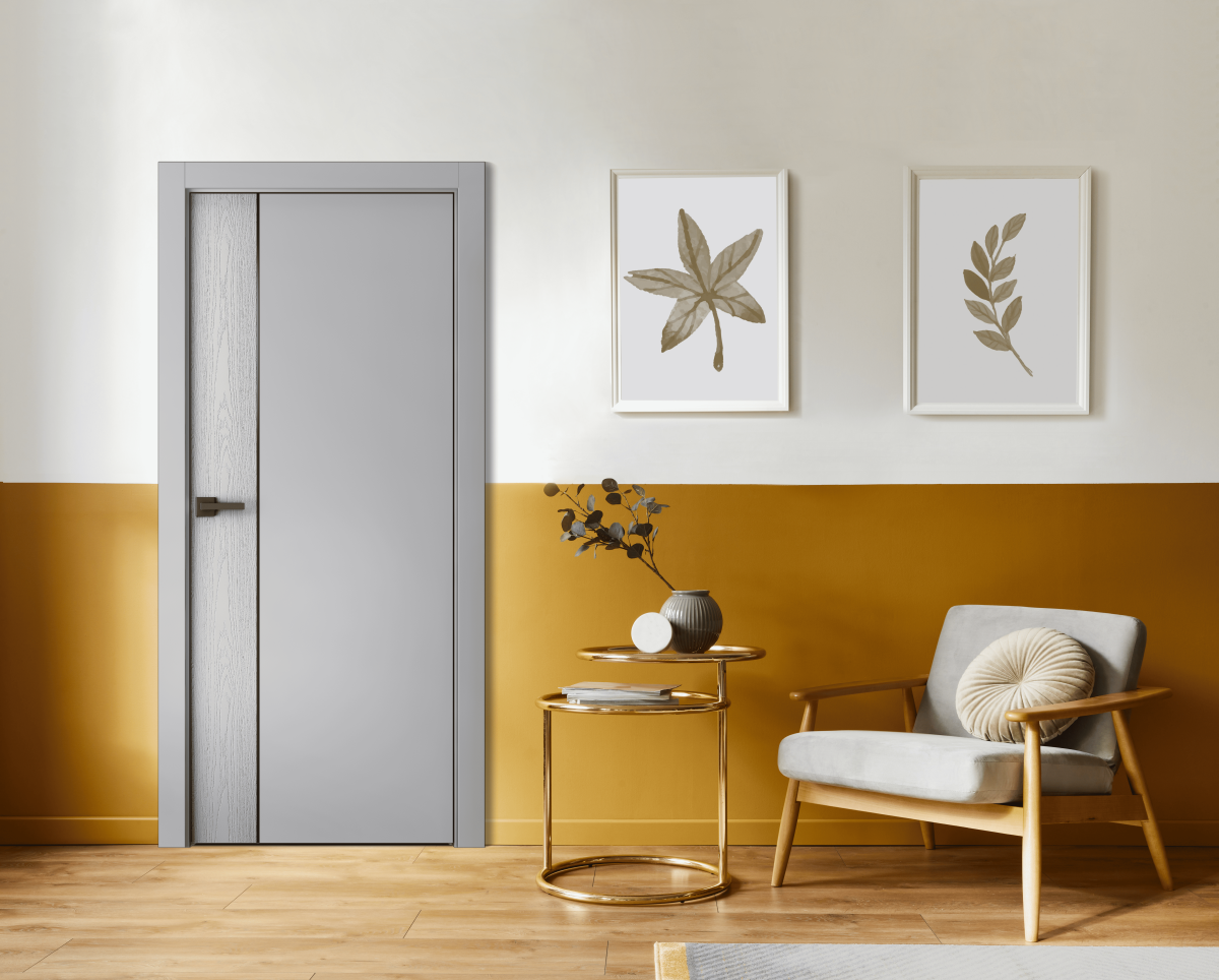 Современный дизайн: акцентным элементом на полотне выступает вертикальная вставка из полипропилена, которая по текстуре напоминает дерево и добавляет интерьеру природных ноток, а также сочетающийся с фурнитурой алюминиевый молдинг в цвете хром или золото. Благодаря минималистичному оформлению и универсальному оттенку глухая межкомнатная дверь из массива дерева Вега 1 гармонично смотрится с любой палитрой, мебелью и домашними аксессуарами.