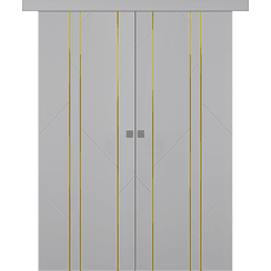 Межкомнатная дверь Флекс 1 Молдинг Золото Эмаль светло-серый Купе двойное глухая