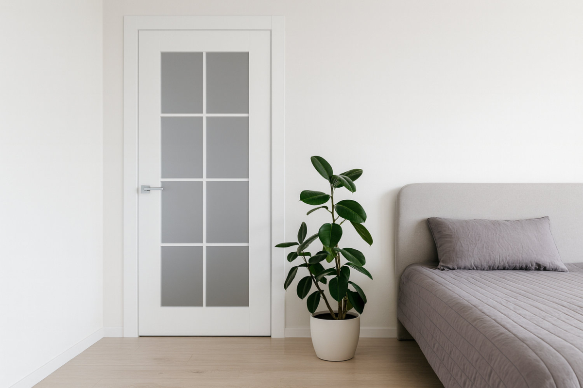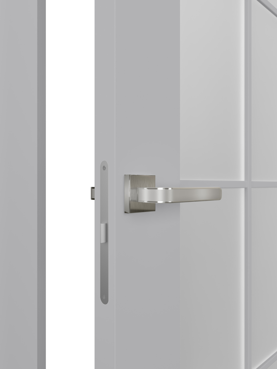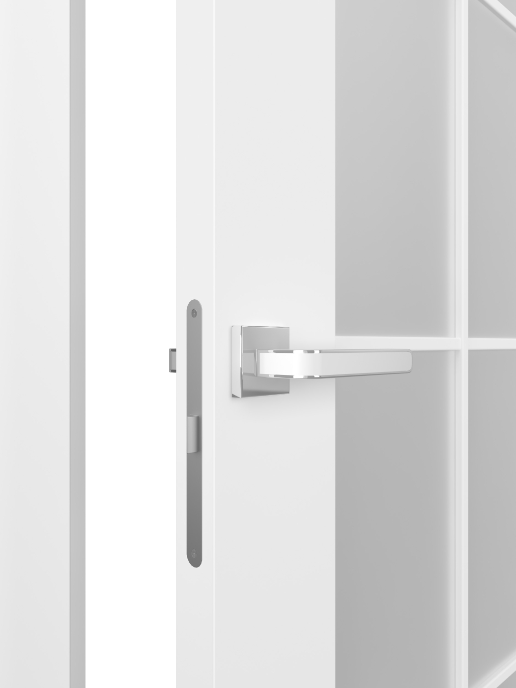 Стекло: закаленное безопасное стекло Мателюкс белого цвета с матовым эффектом сохраняет приватность в комнате, при этом наполняя ее светом. Наполнение: Smart Core — это инновационный экологически чистый материал из древесных волокон, который отвечает за звукоизоляцию и сохранение тепла внутри комнаты.