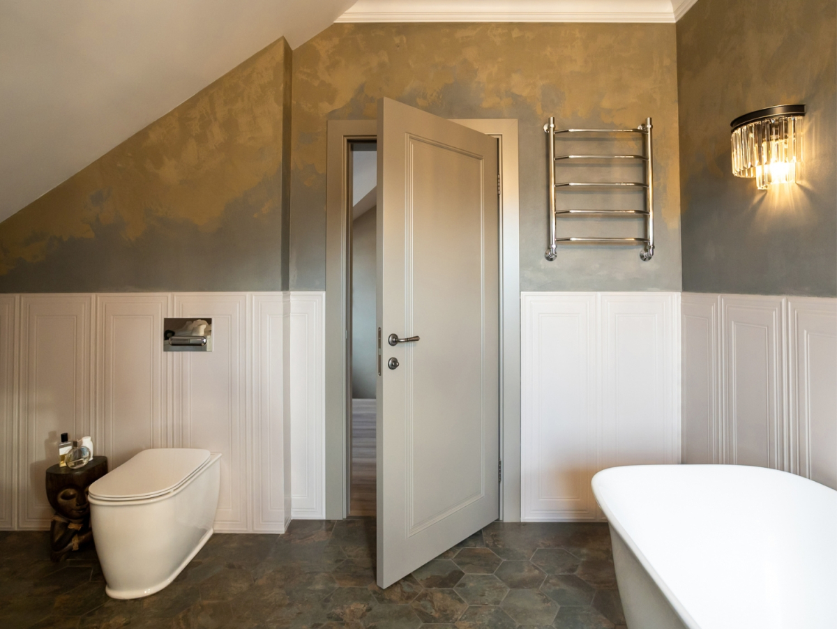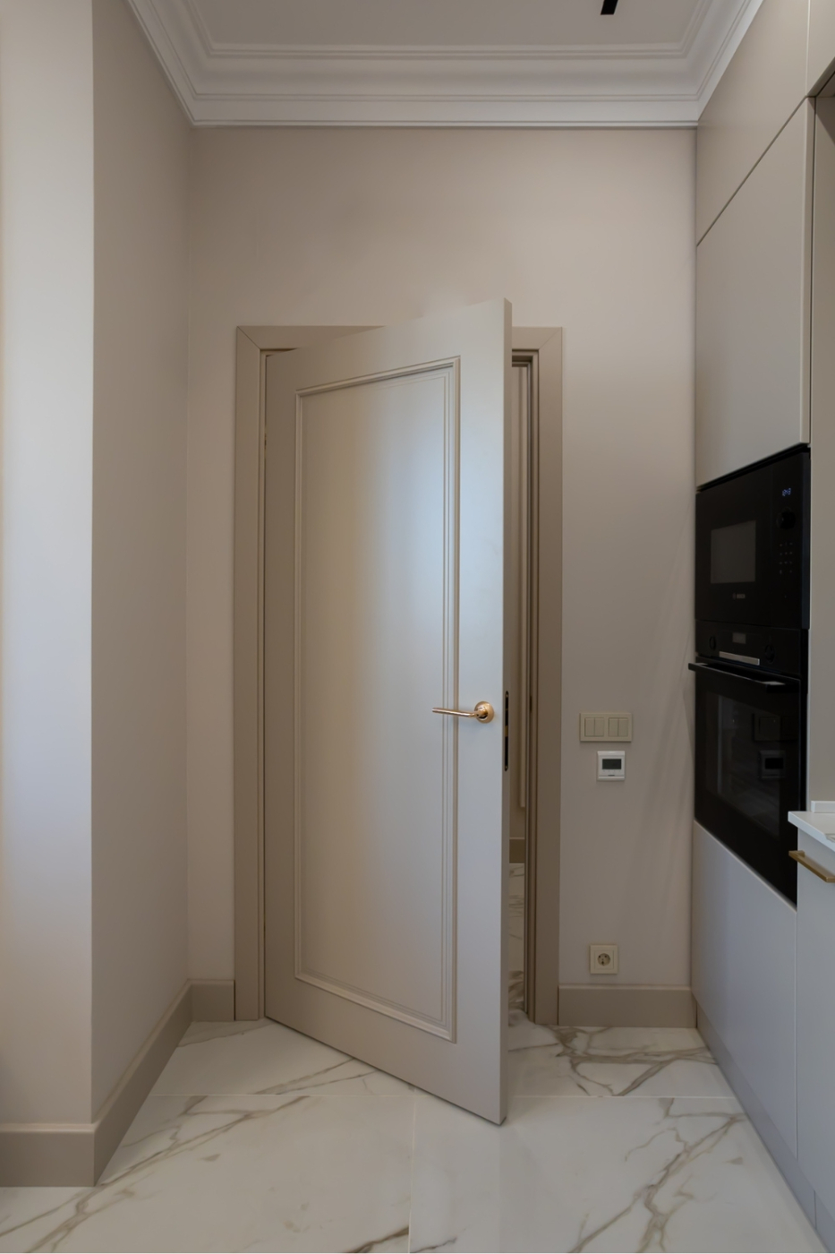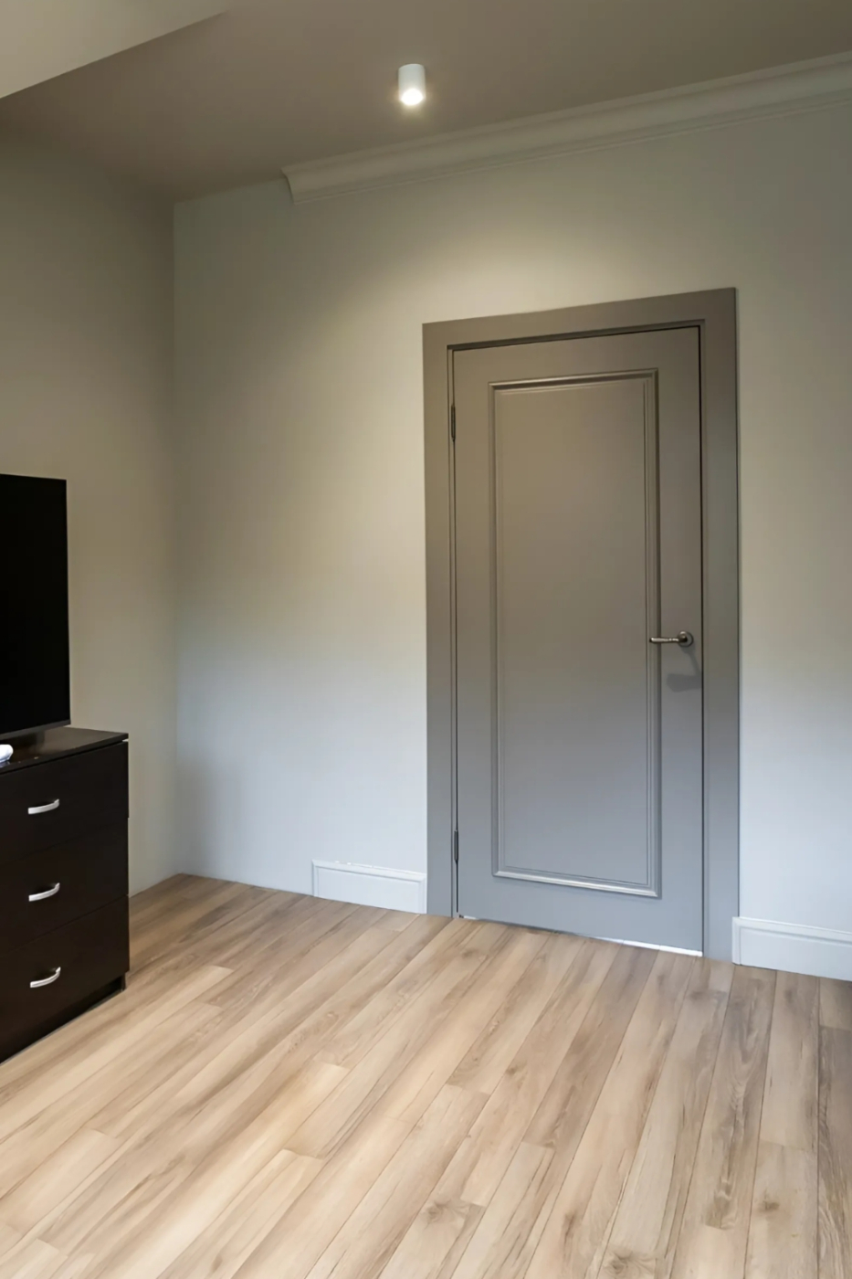 Глухие межкомнатные двери в эмали от белорусского производителя Belwooddoors не пропускают свет и звук, поэтому их можно установить как в гостиной и спальне, так в кабинете или ванной. Модели из коллекции «Ламира» выглядят строго и аккуратно, особенно в монохромных интерьерах.