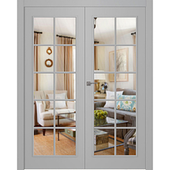 Межкомнатная дверь Ламира 1 Эмаль светло-серый Двойная со стеклом