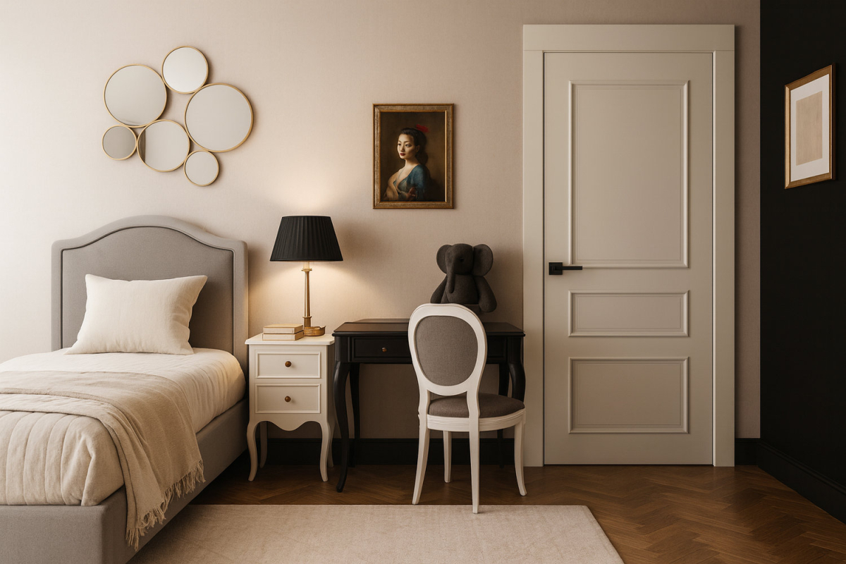 Современный дизайн: три лаконичные филенки разных размеров, очерченные объемным багетом, стали аккуратным декором межкомнатной двери в эмали в классическом стиле. Модель Ламира 3 позволяет сочетать в одном интерьере различные текстуры, цвета, материалы.