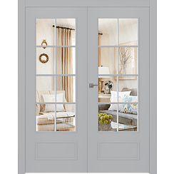 Межкомнатная дверь Ламира 5 Эмаль светло-серый Двойная со стеклом