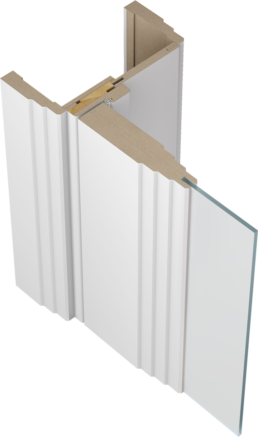 Телескопический наличник - это планка с поперечным профилем в виде уголка, буквы «Г». Короткая сторона уголка вставляется в паз дверной коробки, длинная - прилегает к стене. Телескопический наличник можно вставлять в паз на разную глубину, чтобы отрегулировать конструкцию под толщину стены. У “телескопов” есть ряд других преимуществ: установка проще (без использования гвоздей или клея), реже требуется приобретать добор (только для экстремально толстых стен), возможна установка наличника и на коробку, и на добор, отсутствуют повреждения при демонтаже.