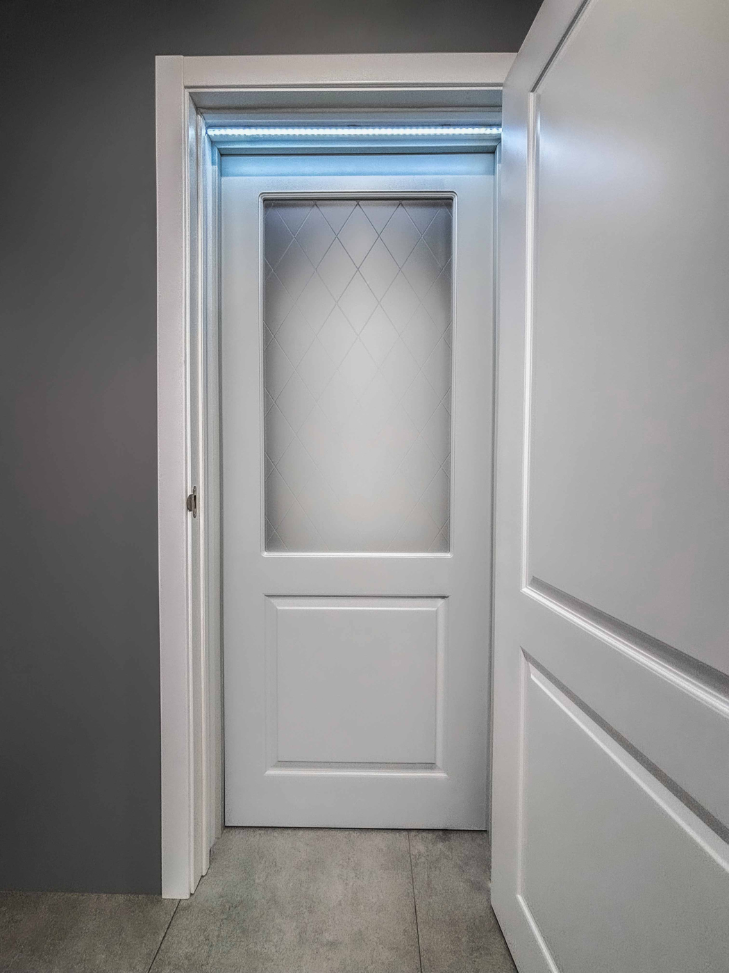 Стекло: витражное стекло Мателюкс белого цвета с матовым эффектом сохраняет приватность в комнате, при этом наполняя ее светом.
