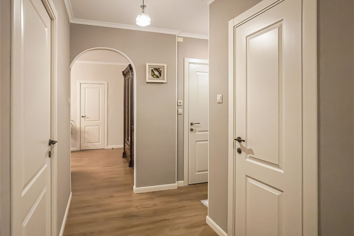 Это наличник, который образует единую плоскость с дверным полотном. Такое решение создаёт стильный минималистичный дизайн. В то же время обеспечивается экономия пространства, так как с наружной стороны дверь можно открыть полностью. Наружный наличник-компланар представляет собой накладную планку Г-образной формы, где короткая сторона соприкасается с торцом дверного полотна, а длинная прилегает к стене. С внутренней стороны дверей можно использовать телескопические наличники.