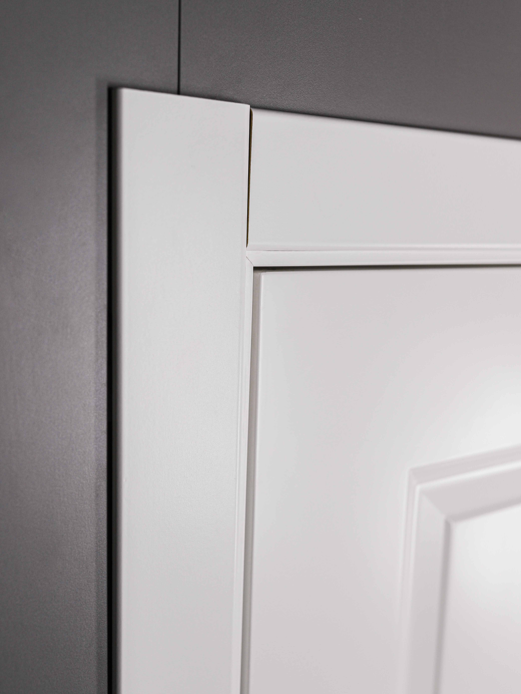 Телескопический наличник - это планка с поперечным профилем в виде уголка, буквы «Г». Короткая сторона уголка вставляется в паз дверной коробки, длинная - прилегает к стене. Телескопический наличник можно вставлять в паз на разную глубину, чтобы отрегулировать конструкцию под толщину стены. У “телескопов” есть ряд других преимуществ: установка проще (без использования гвоздей или клея), реже требуется приобретать добор (только для экстремально толстых стен), возможна установка наличника и на коробку, и на добор, отсутствуют повреждения при демонтаже.