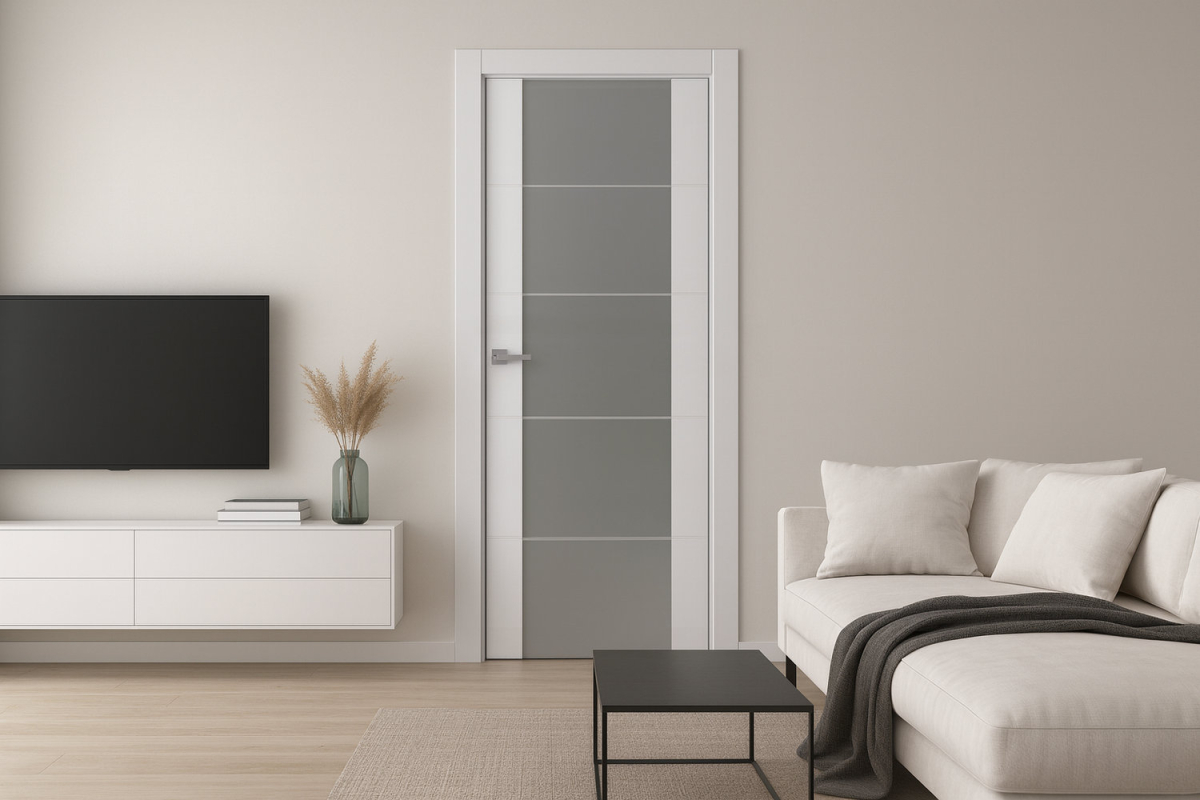 Межкомнатная дверь Arvika 202 Эмаль светло-серый со стеклом