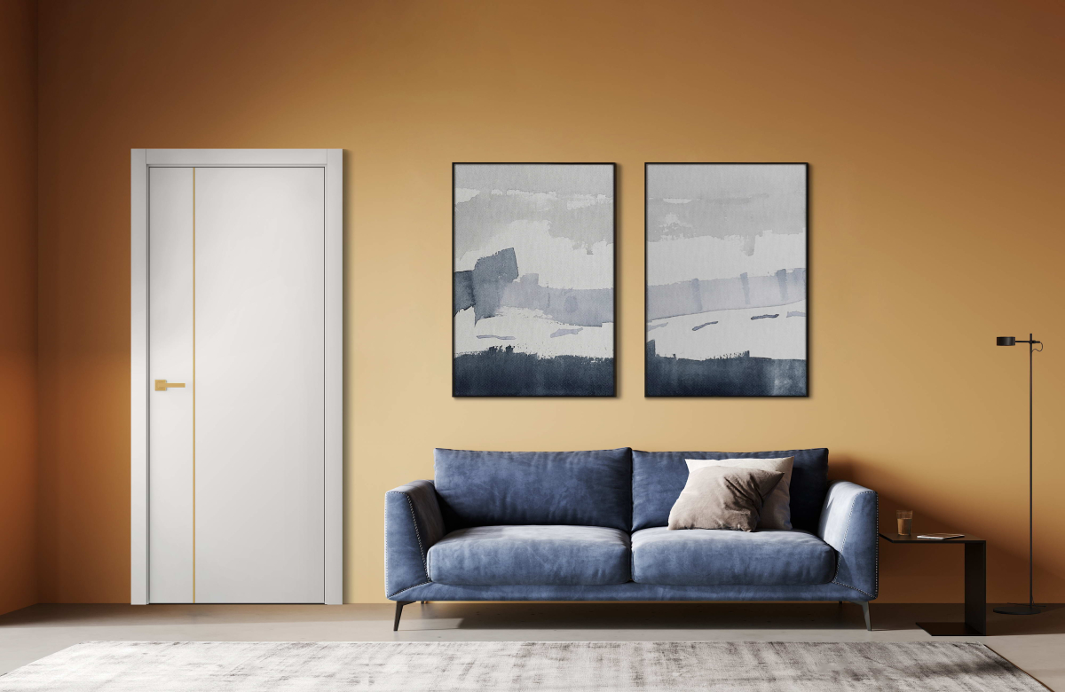 Межкомнатная дверь Avesta 1V Молдинг Золото Эмаль жемчуг глухая