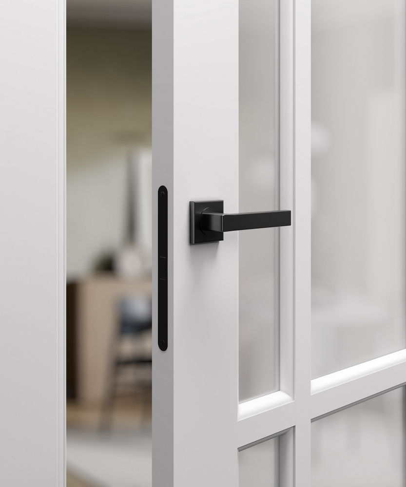 Стекло: закаленное безопасное стекло Мателюкс (4 мм) белого цвета с матовым эффектом сохраняет приватность в комнате, слегка наполняя ее светом.