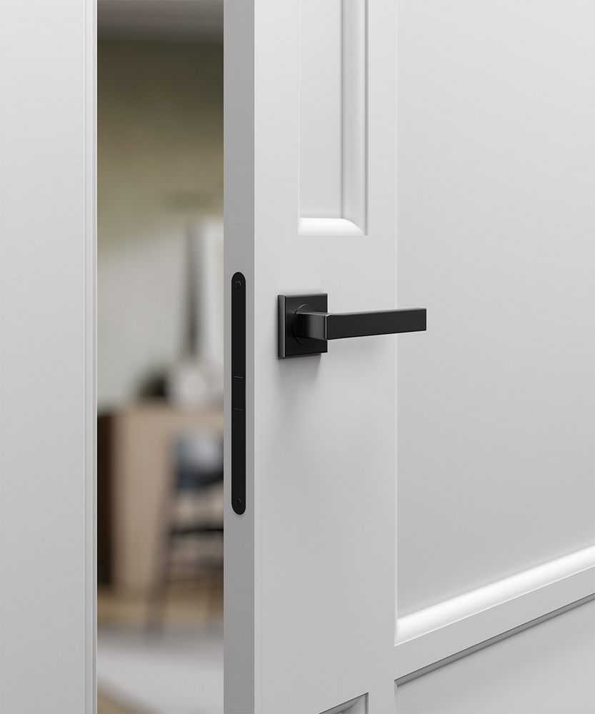 Это наличник, который образует единую плоскость с дверным полотном. Такое решение создаёт стильный минималистичный дизайн. В то же время обеспечивается экономия пространства, так как с наружной стороны дверь можно открыть полностью. Наружный наличник-компланар представляет собой накладную планку Г-образной формы, где короткая сторона соприкасается с торцом дверного полотна, а длинная прилегает к стене. С внутренней стороны дверей можно использовать телескопические наличники.