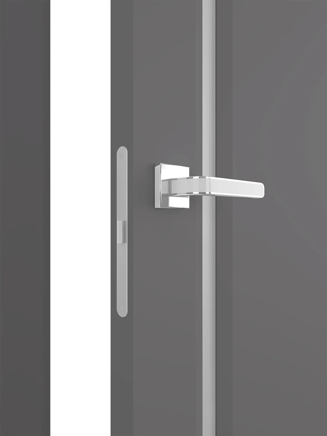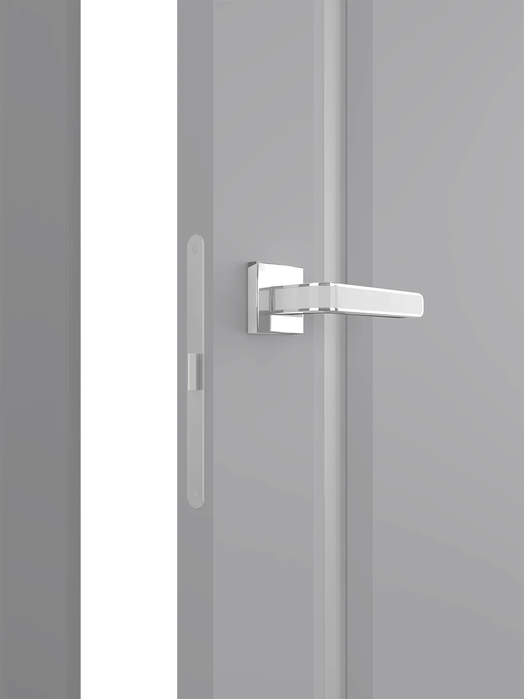Стекло: закаленное безопасное стекло Мателюкс белого цвета с матовым эффектом сохраняет приватность в комнате, слегка наполняя ее светом.