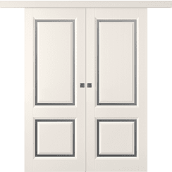 Межкомнатная дверь Платинум 2 Эмаль жемчуг Купе двойное со стеклом