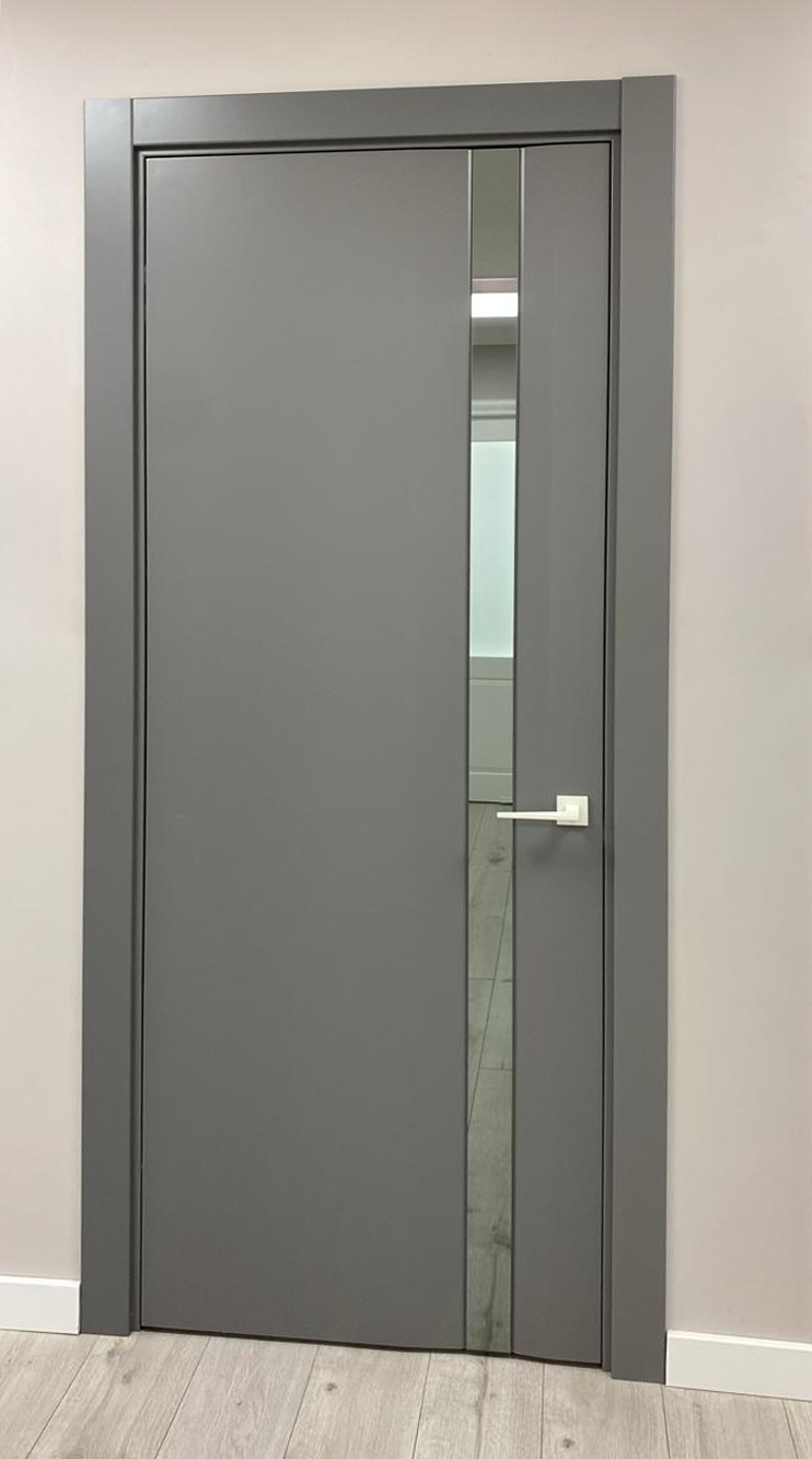 Межкомнатная дверь Слайд Эмаль светло-серый с зеркалом