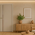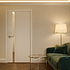 Это наличник, который образует единую плоскость с дверным полотном. Такое решение создаёт стильный минималистичный дизайн. В то же время обеспечивается экономия пространства, так как с наружной стороны дверь можно открыть полностью. Наружный наличник-компланар представляет собой накладную планку Г-образной формы, где короткая сторона соприкасается с торцом дверного полотна, а длинная прилегает к стене. С внутренней стороны дверей можно использовать телескопические наличники.