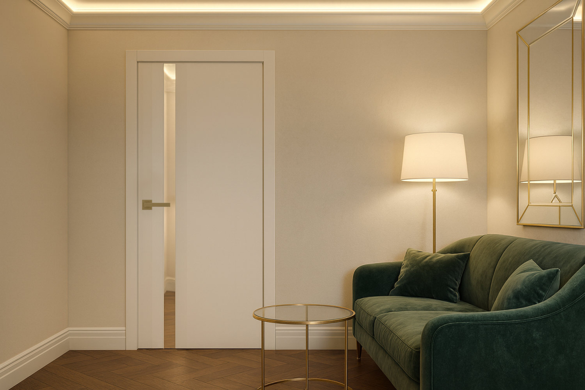 Современный дизайн: минималистичное оформление полотна с плавным рельефным переходом и узкой вставкой из зеркала будет гармонично смотреться в любом интерьере. Слайд — выразительная и эффектная модель межкомнатной двери, которая станет не только функциональным, но и эстетически привлекательным акцентом в доме или квартире.