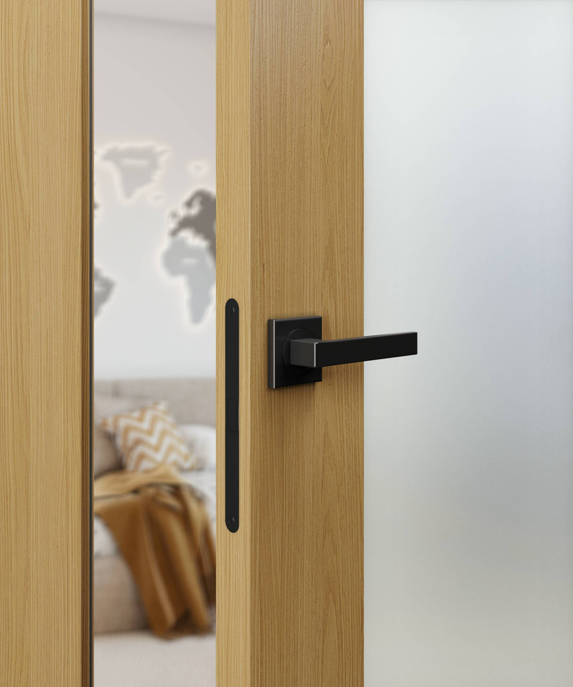 Стекло: закаленное безопасное стекло Мателюкс белого цвета с матовым эффектом сохраняет приватность в комнате, при этом наполняя ее светом.
