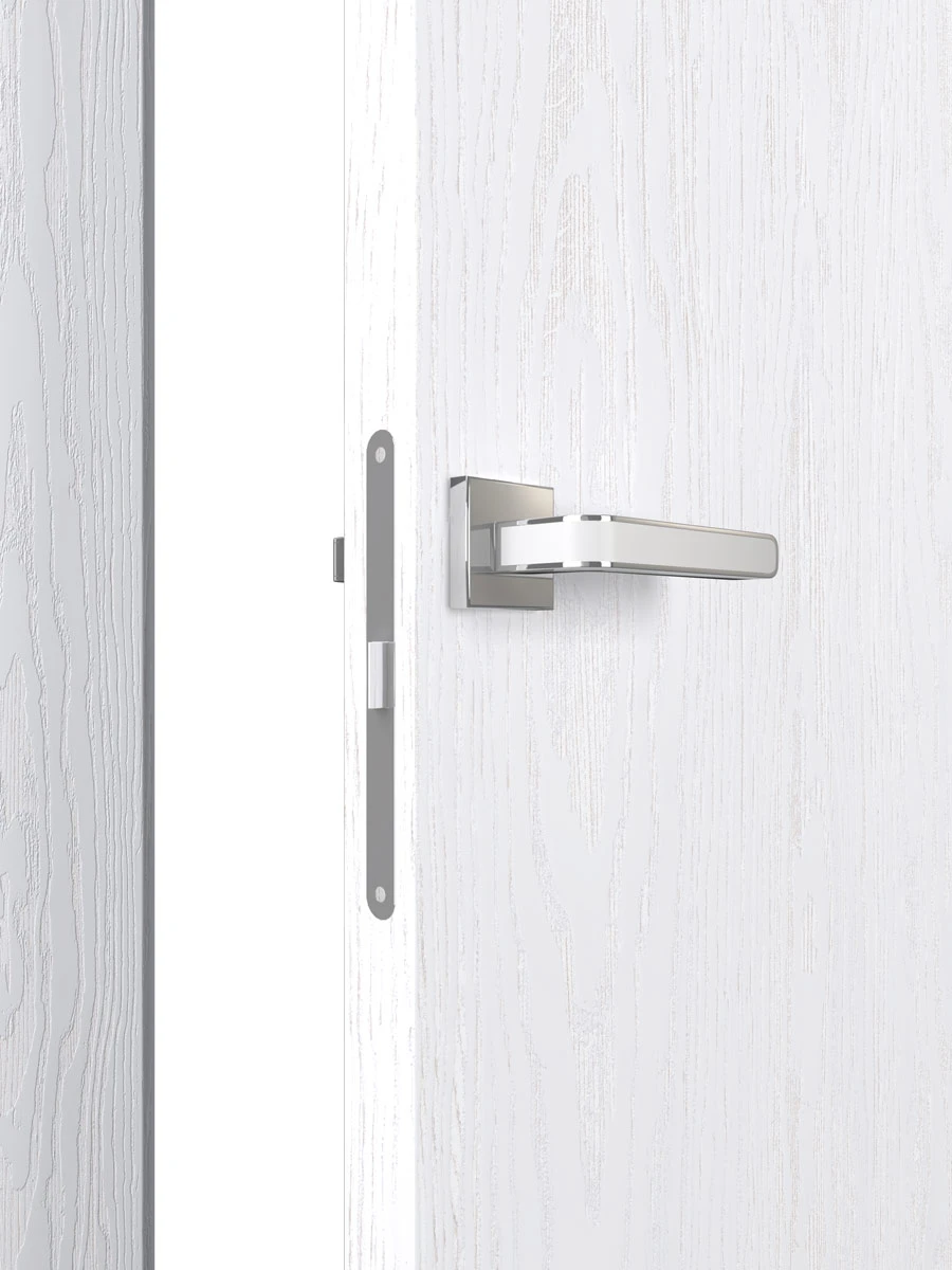 Качественная финишная отделка: подобранный вручную натуральный шпон ясеня в несколько слоев покрыт эмалью. Она наносится специальным роботом и защищает поверхность двери от влаги и механических повреждений.