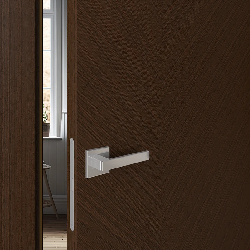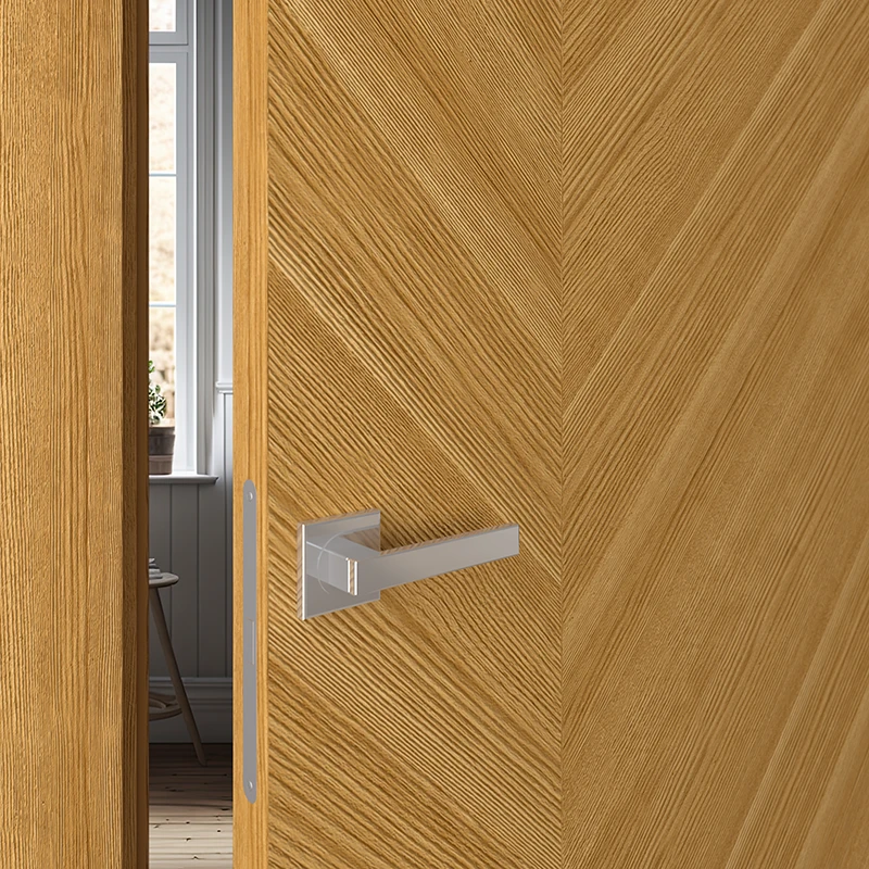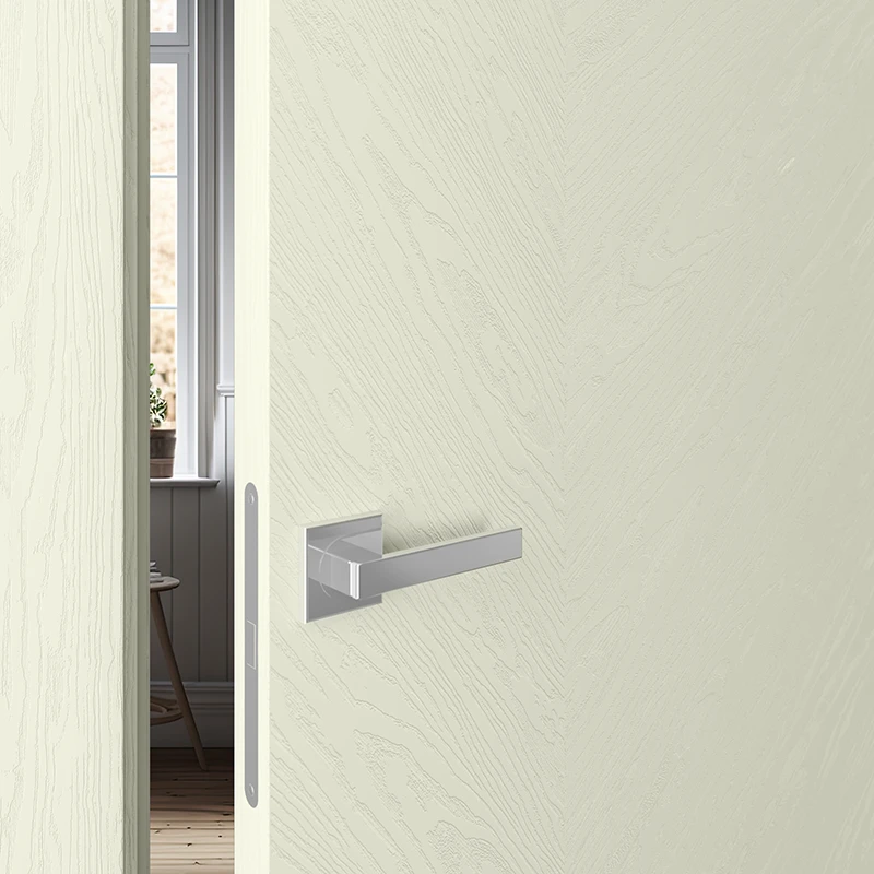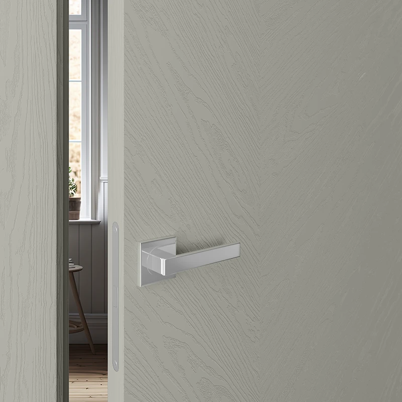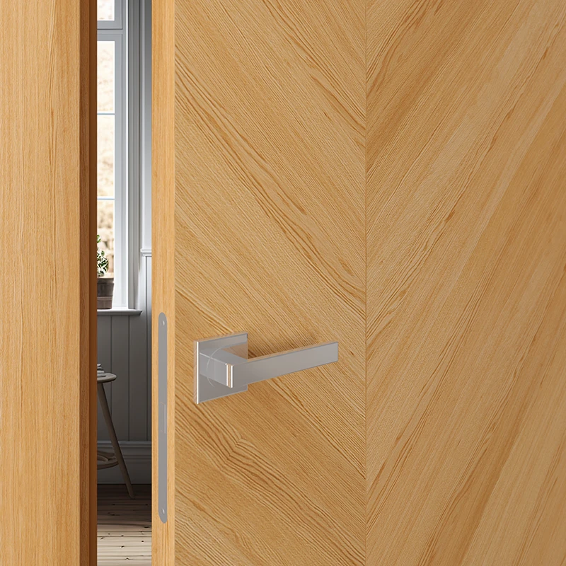Это наличник, который образует единую плоскость с дверным полотном. Такое решение создаёт стильный минималистичный дизайн. В то же время обеспечивается экономия пространства, так как с наружной стороны дверь можно открыть полностью. Наружный наличник-компланар представляет собой накладную планку Г-образной формы, где короткая сторона соприкасается с торцом дверного полотна, а длинная прилегает к стене. С внутренней стороны дверей можно использовать телескопические наличники.