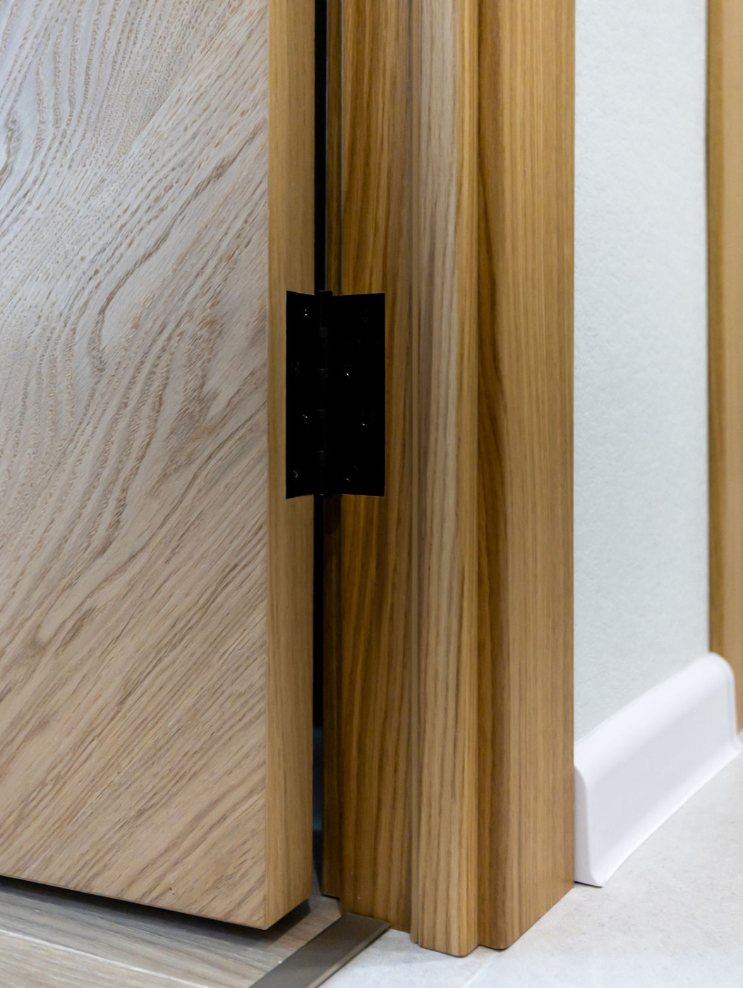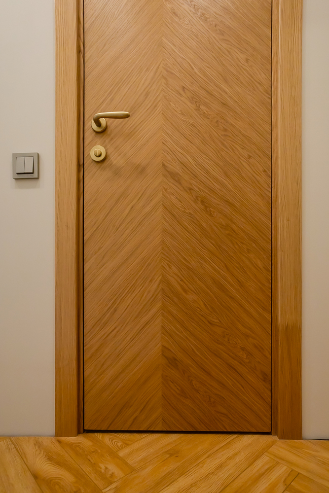 Это наличник, который образует единую плоскость с дверным полотном. Такое решение создаёт стильный минималистичный дизайн. В то же время обеспечивается экономия пространства, так как с наружной стороны дверь можно открыть полностью. Наружный наличник-компланар представляет собой накладную планку Г-образной формы, где короткая сторона соприкасается с торцом дверного полотна, а длинная прилегает к стене. С внутренней стороны дверей можно использовать телескопические наличники.